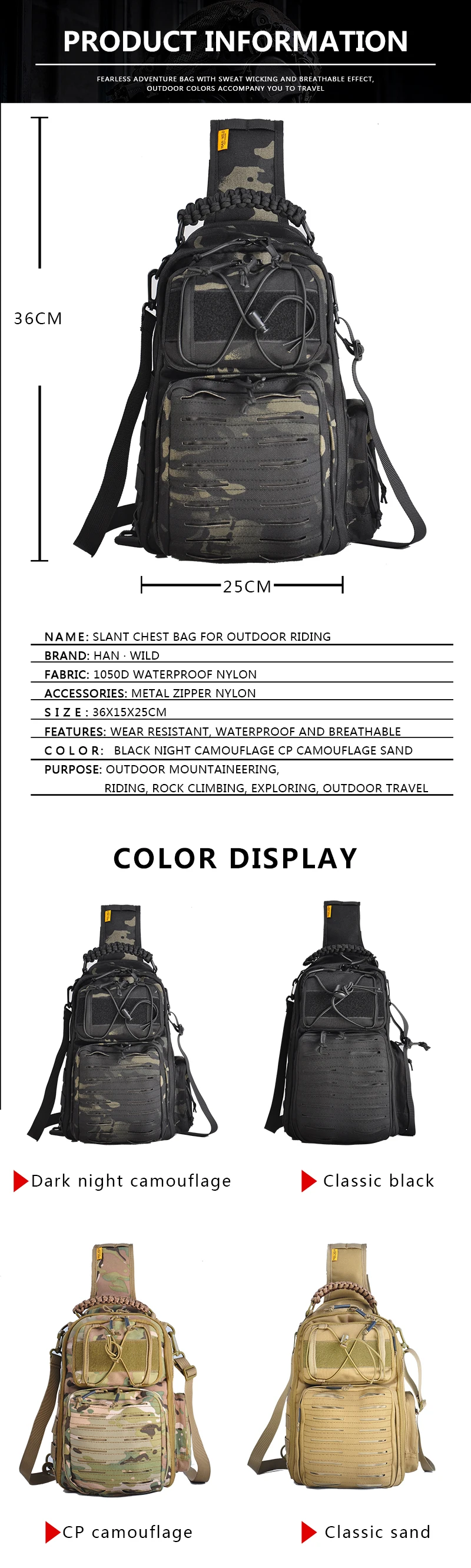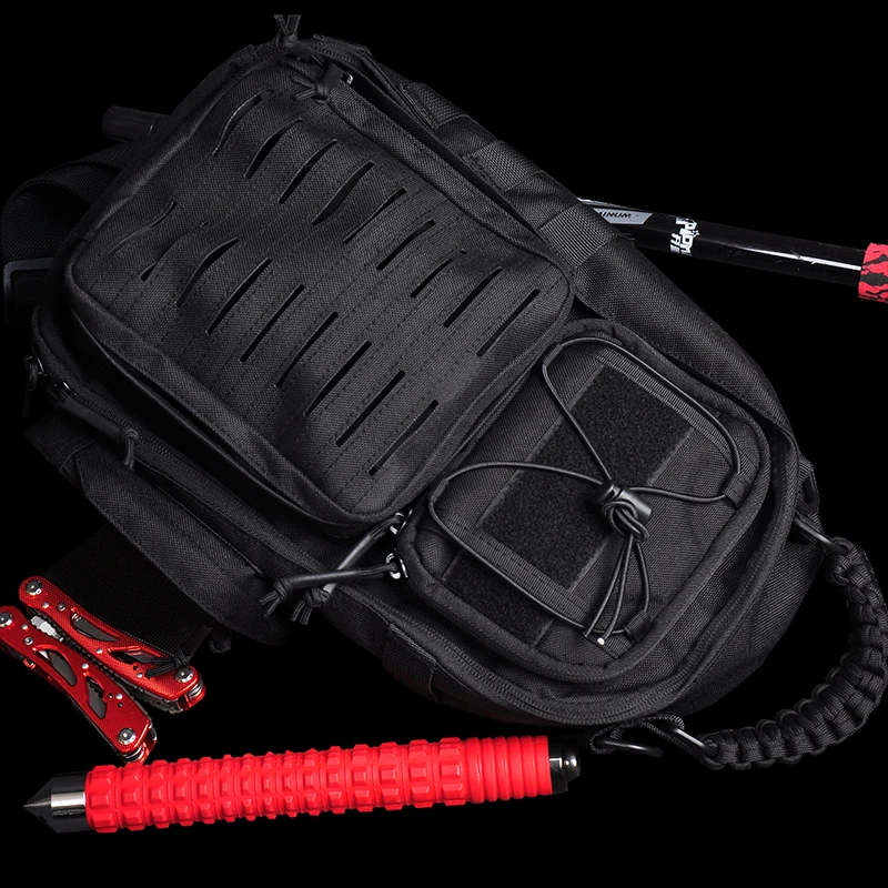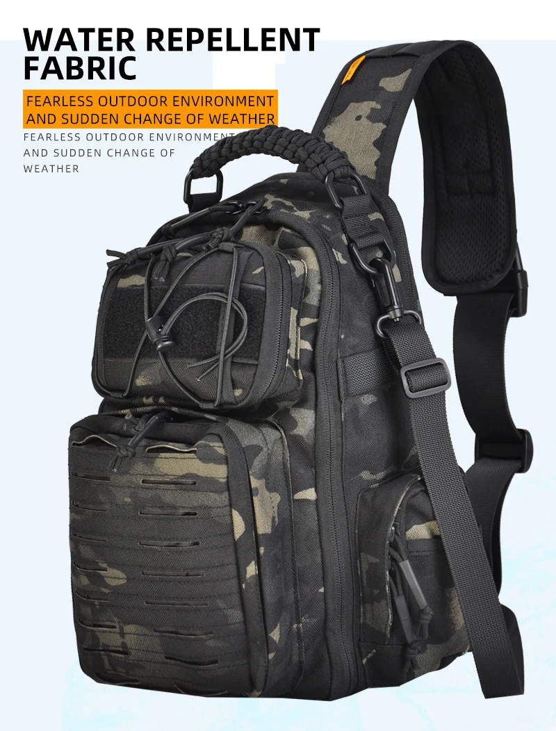 CORREA TÁCTIL-Dos correas de hombro intercambiables izquierda/derecha, ajustables y desmontables. La longitud de la correa principal se puede extender hasta 130cm, mientras que la correa asociada se puede extender hasta 92cm. Se puede utilizar como bandolera, mochila, bolso, bolsa de pecho, bolsa de aparejos de pesca, bolsa de viaje, etc. Dos cinturones de caña para sujetar tus varillas.