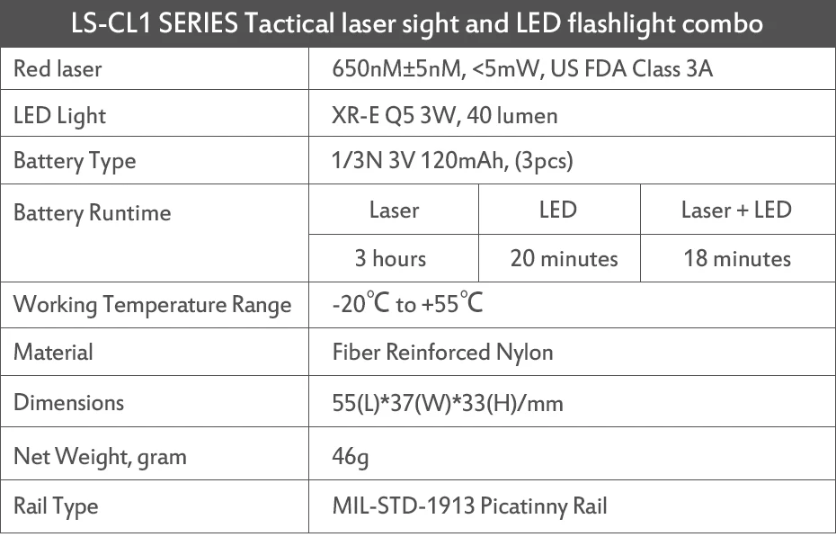 1. Láser único 2. Luz única 3. Combo de luz láser 4. Incluye batería