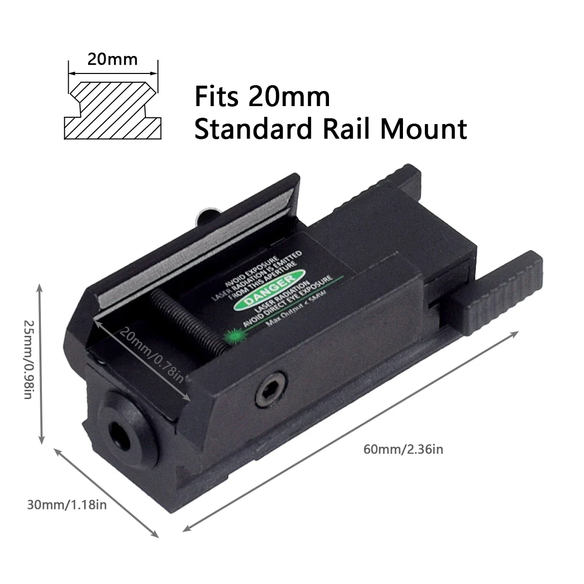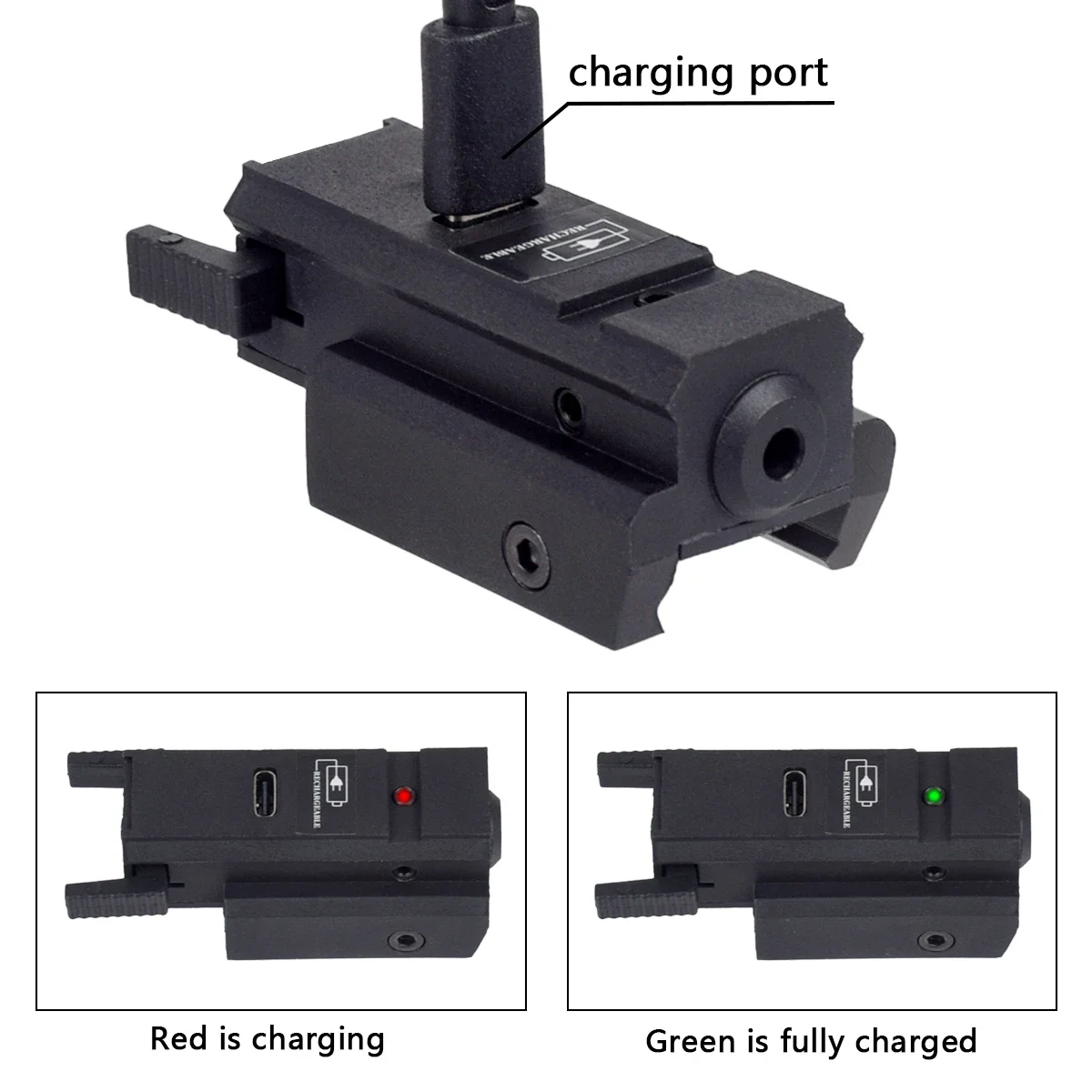 Especificación Alcance del láser superior a 100 metros. Dimensión de instalación: 20 mm Longitud de onda del láser: 520 nm (verde) 650 nm (rojo) Batería: batería recargable incorporada