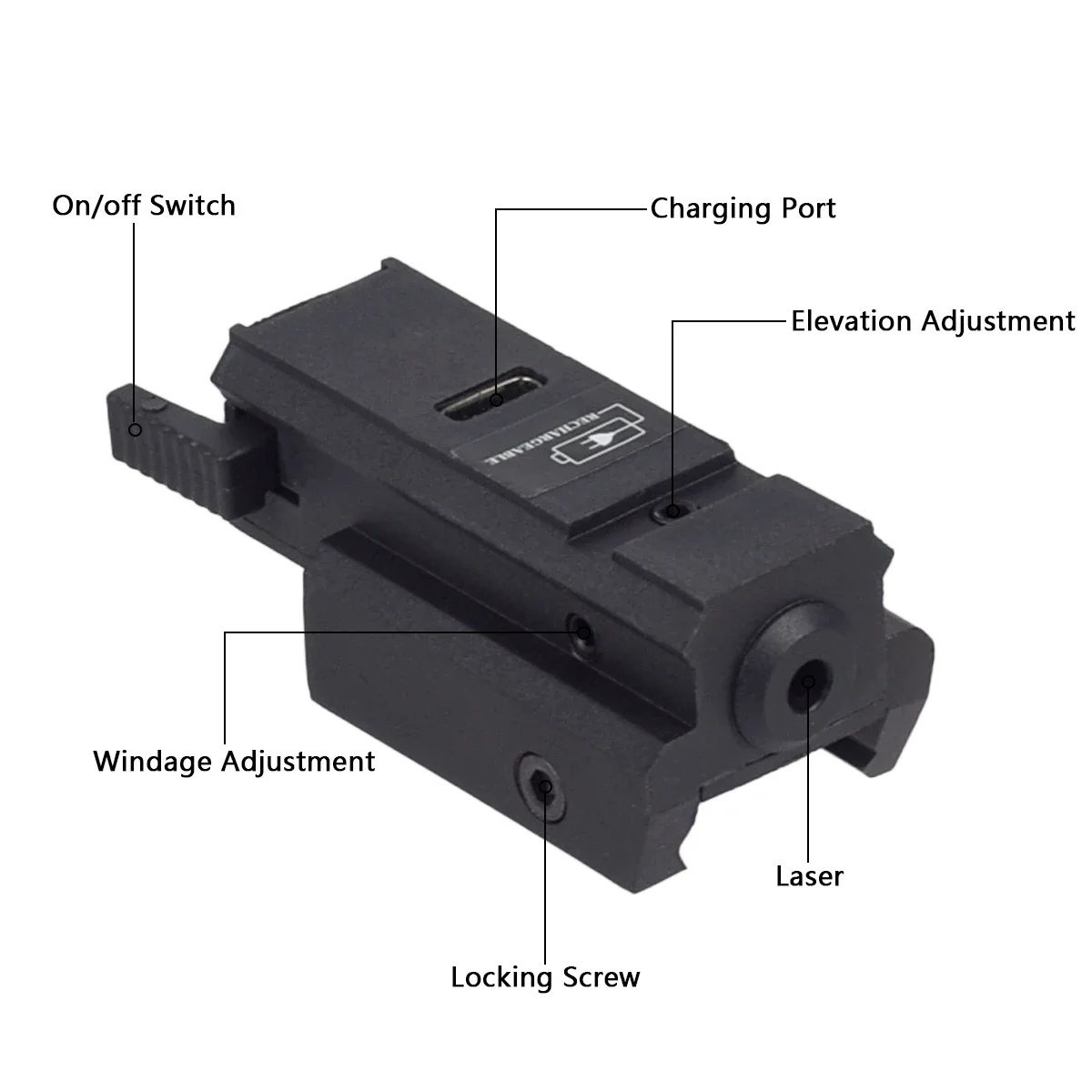 El paquete incluye 1 mirilla láser roja/verde recargable. 1 línea de carga tipo c 1X llave hexagonal 1X manual de usuario