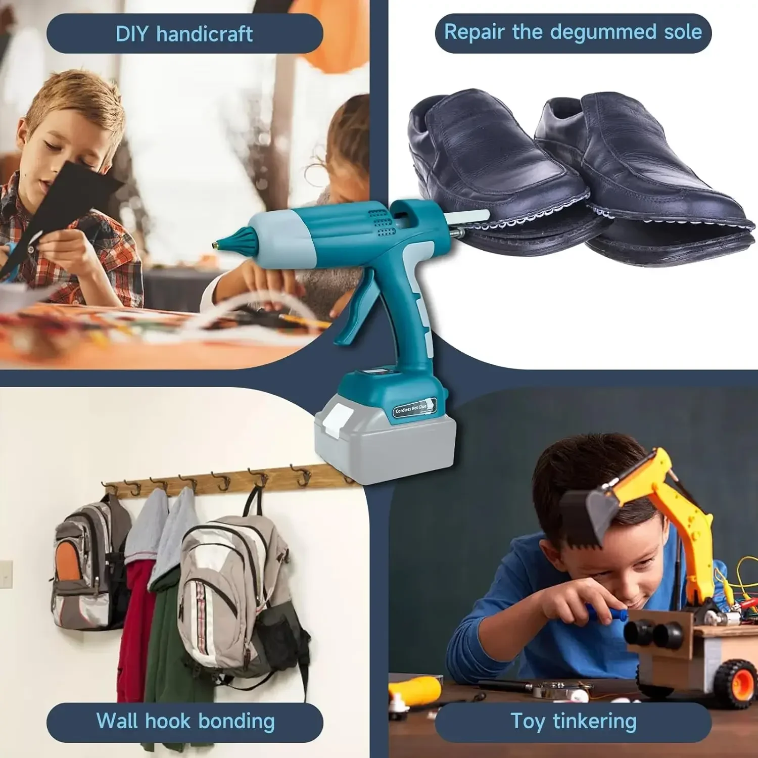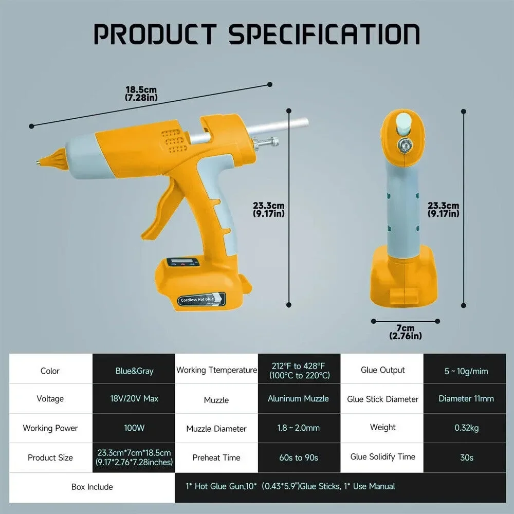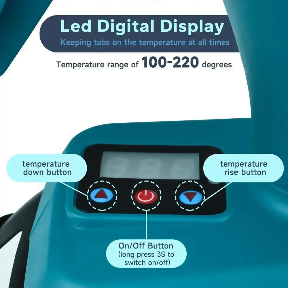 * Pistola de pegamento de batería de litio con pantalla de temperatura y función de ajuste de temperatura.