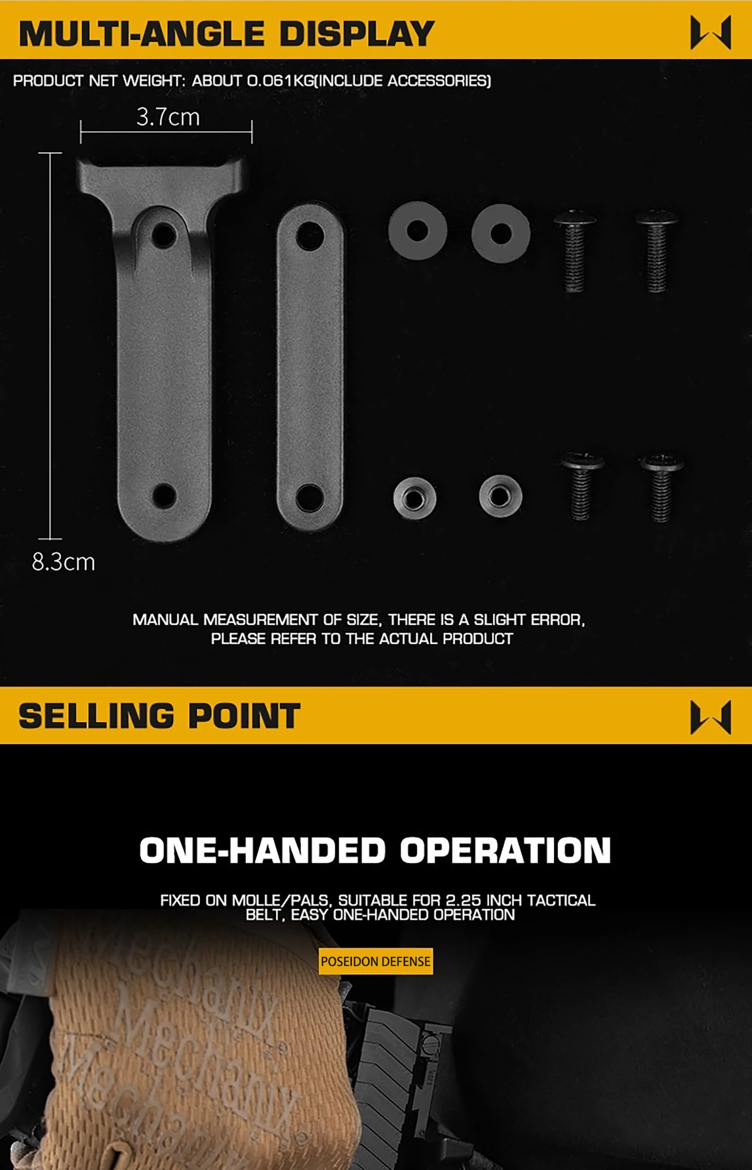 Pistola Pistola Revista Mag Equipo auxiliar de carga con una sola mano Fácil operación fija en Molle Pals para correa de 2,25 pulgadas