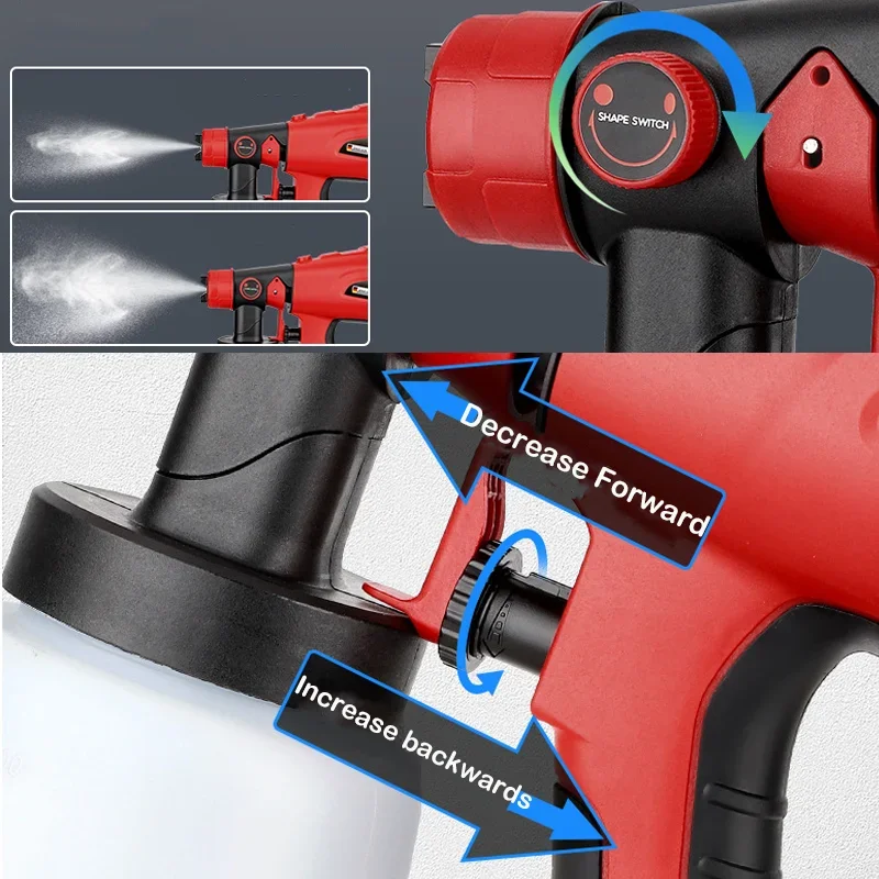 ● Tres patrones de pulverización: redondo, vertical y horizontal. Puede seleccionar un patrón para dispersar la pintura de la manera deseada