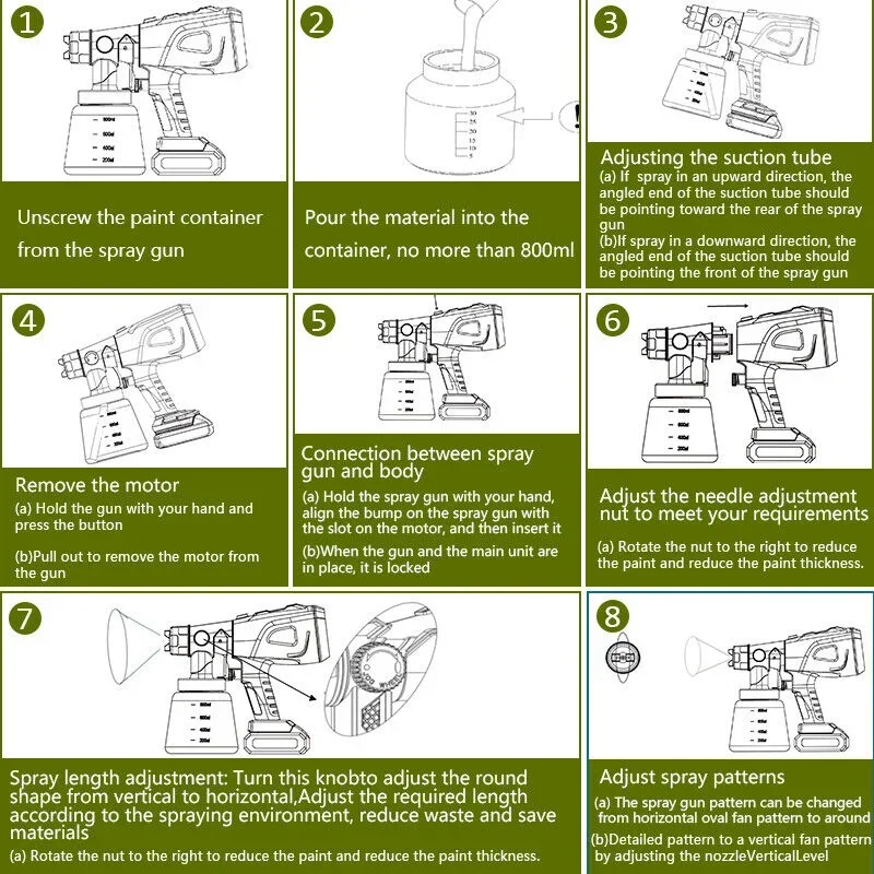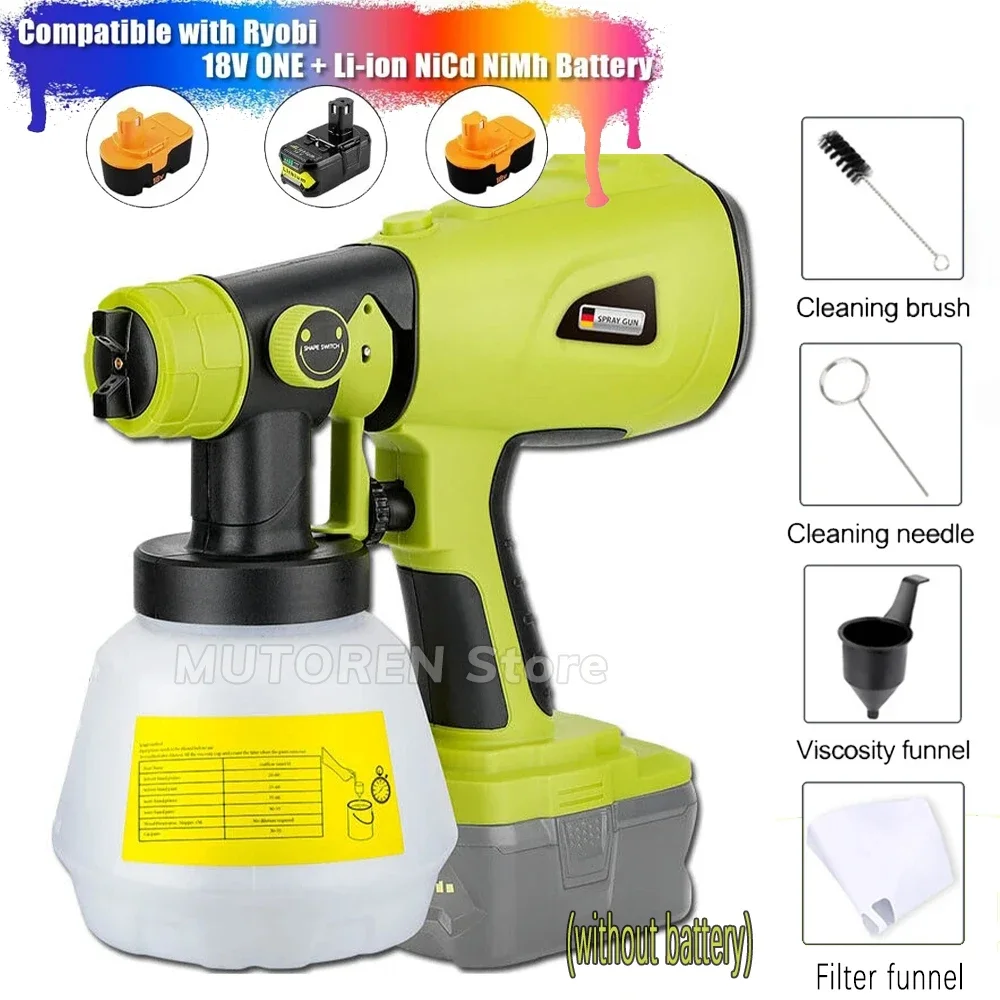 Pistola pulverizadora eléctrica inalámbrica con 3 patrones de pulverización para batería Ryobi de 18V, pulverizador de pintura eléctrico de alta potencia de 800ML