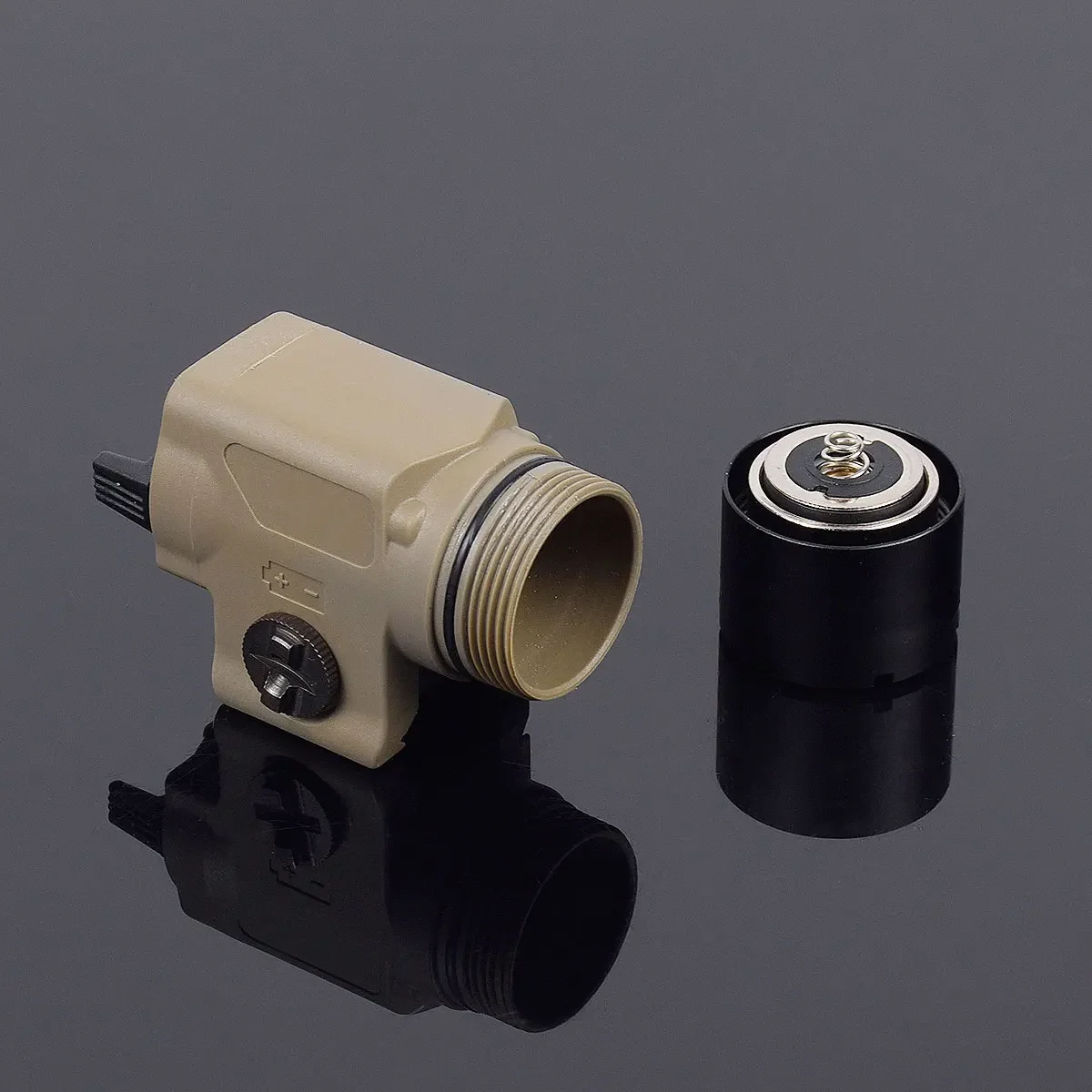 Ultraligero y compacto.Para pistolas con rieles compactos y de tamaño completoOperación ambidiestraRango de temperatura de funcionamiento: -40F a 120F.La interfaz de ajuste y cierre con una sola mano mantiene las manos alejadas de la boca al colocarlas o quitarlas.Función de apagado seguro.Función "Safe Off" en el bisel: desenrosque hasta sentir que "detenga": evita la activación accidental y ahorra bateríasOperación ambidiestraDiseño clasificado IPX4; funcionamiento resistente al aguaIncluye kit de llavesBatería: 1 x CR2 (no incluida)1.Haga clic en el interruptor de encendido y apagado (cada otro lado)2.Presione el interruptor bilateral simultáneamente durante unos 3 segundos para lograr una alternancia del modo de función.a.Luz blanca constanteb.Luz blanca momentáneaTR4