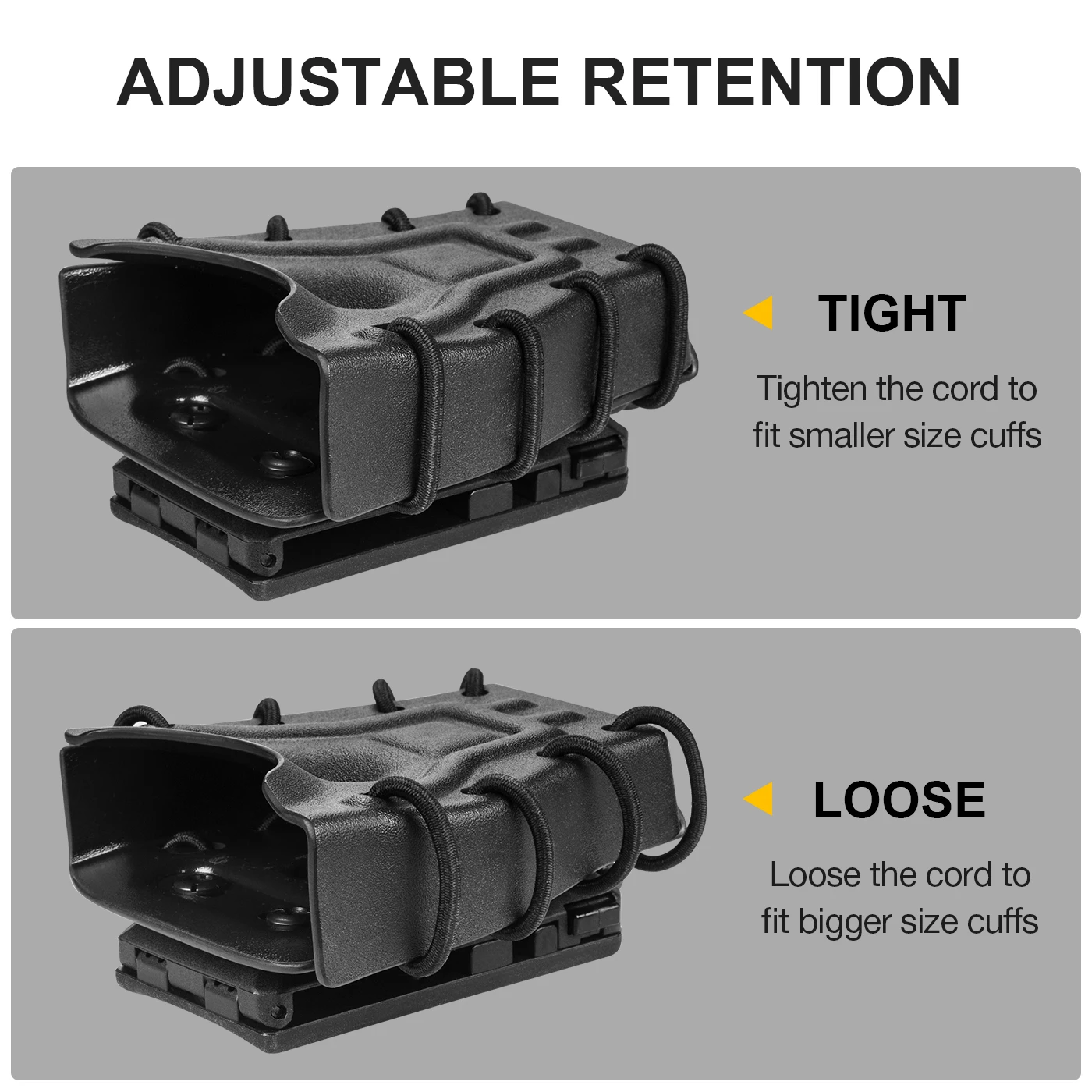 RETENCIÓN AJUSTABLE-La retención se puede ajustar para adaptarse a esposas de diferentes tamaños.