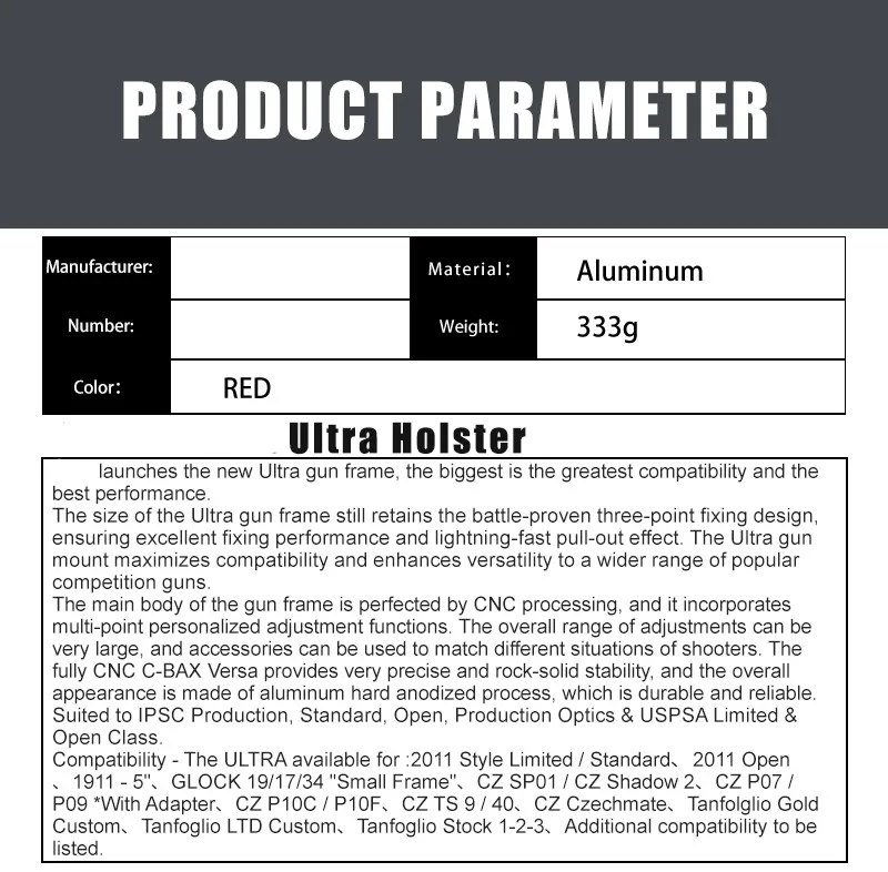 Pistolera de aluminio C-BAX IPSC USPSA CNC, Ultra pistolera para tiro profesional, competición, tirador rápido, novedad de 2023