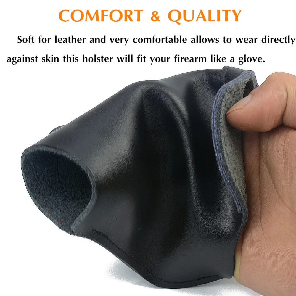 COMODIDAD Y CALIDAD: suave para el cuero y muy cómodo permite usarlo directamente contra la piel, esta funda se ajustará a su arma de fuego como un guante