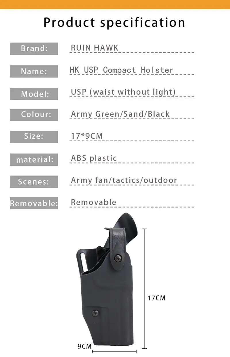 Funda militar para pistola Airsoft para pistola táctica HK USP compacta, funda para cinturón de pistola de cintura, funda para pistola de mano derecha de combate de caza