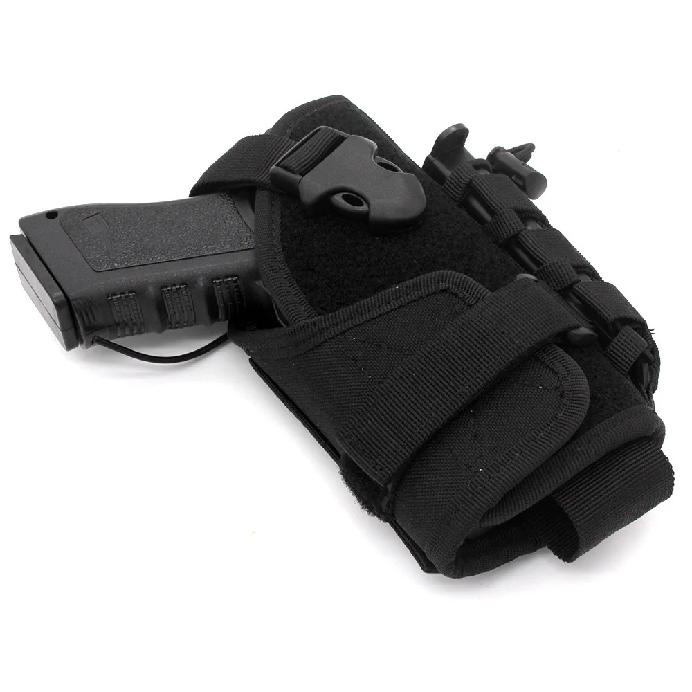 1 sistema Molle: se puede acoplar al cinturón MOLLE o correas, chaleco, bolsa, etc. 2 Correa ajustable para adaptarse a la mayoría de pistolas 3 funda para manos para tiradores diestros 4 puede colocar la pistola con funda en su pierna, brazo o cualquier lugar a través de un cierre de gancho y bucle 5 utilizado para accesorios de pistola de caza Airsoft