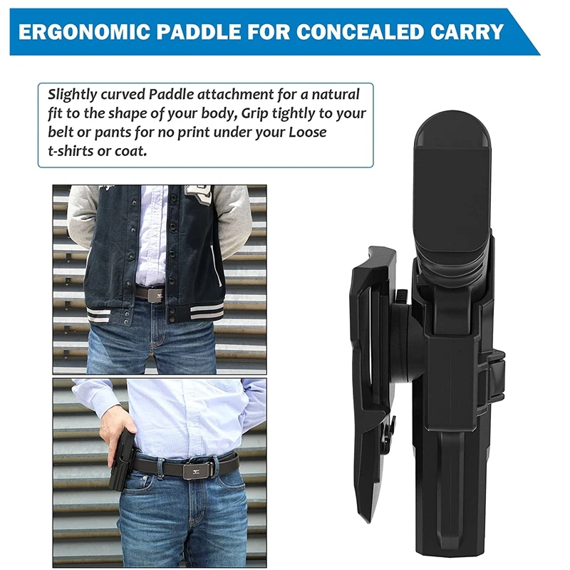 * Compatible con 4 plataformas de transporte diferentes: paleta (estándar), clip de cinturón, MOLLE y plataforma de pierna.