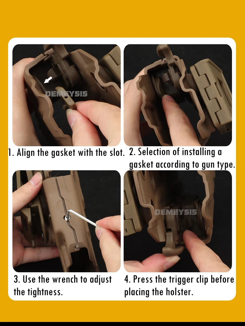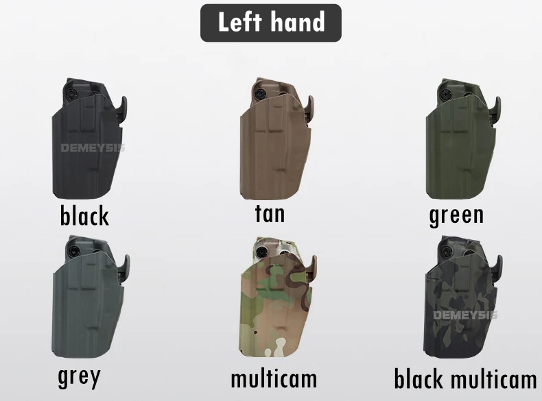 ● Botón de liberación rápida: esta funda táctica requiere que coloque el dedo medio en la posición del gatillo para liberar su arma cuando la esté usando, extraiga rápidamente de esta funda ajustable.
