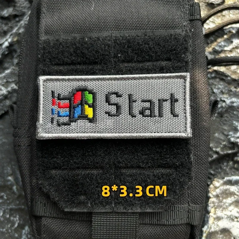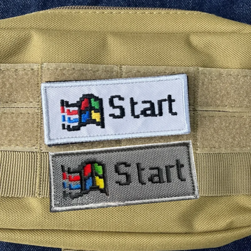 Logotipo de inicio de computadora nostálgico de píxeles funcionales, parches de gancho y bucle bordados, insignia de moral táctica, pegatina decorativa para mochila