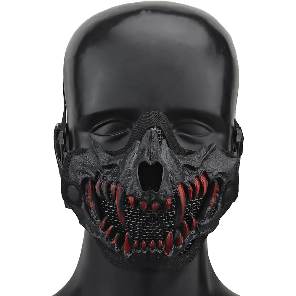 ▶DISEÑO FINO DE PROTECCIÓN DUAL: el equipo de protección Airsoft presenta colmillos de calavera geniales que no solo agregan estilo sino que también agregan protección adicional, la malla de airsoft se dobla suavemente para adaptarse mejor a su cara.