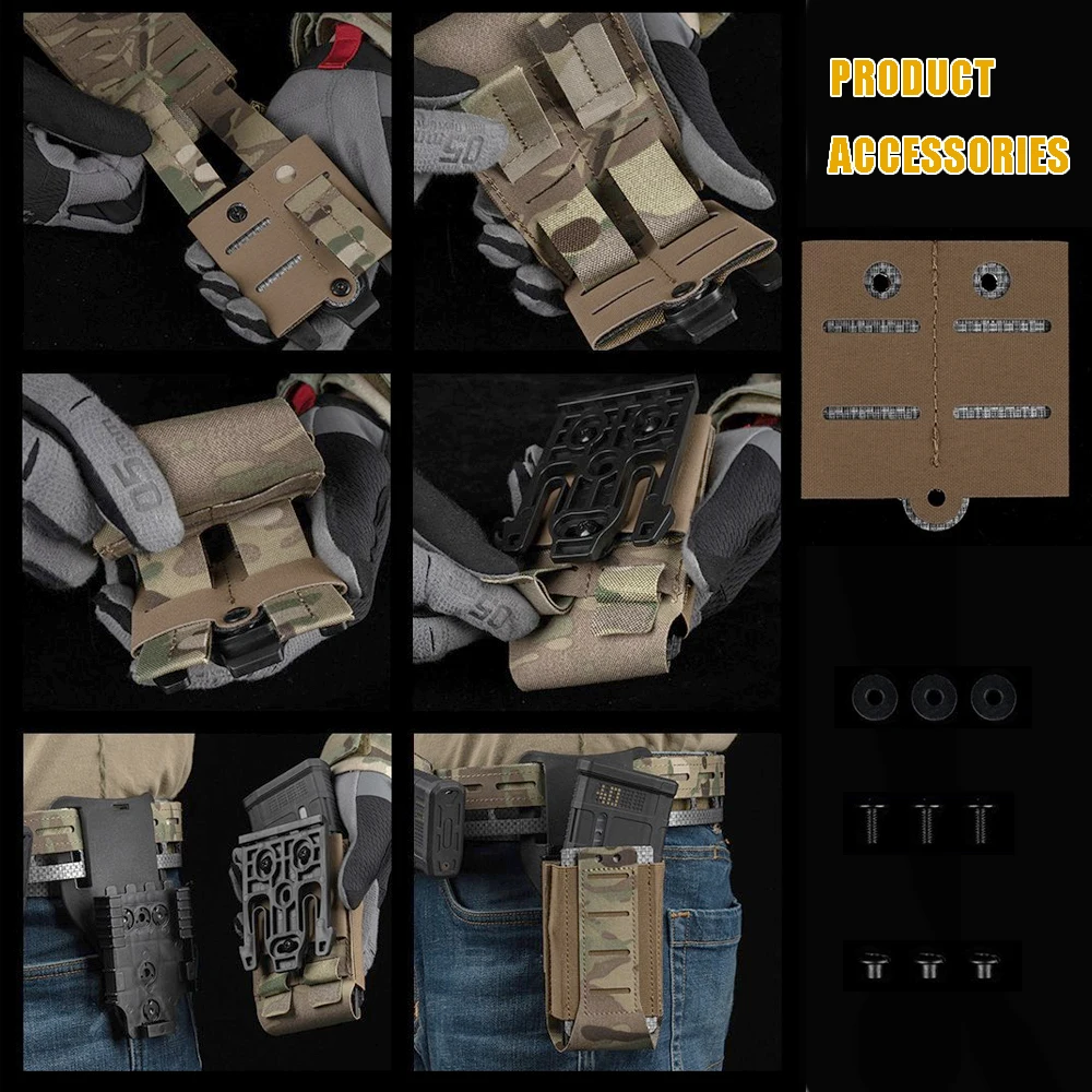 Placa adaptadora táctica QLS para horquilla MOLLE, cualquier bolsa MOLLE compatible con espacio de montaje cortado con láser, accesorios adaptadores MOLLE Airsoft QLS