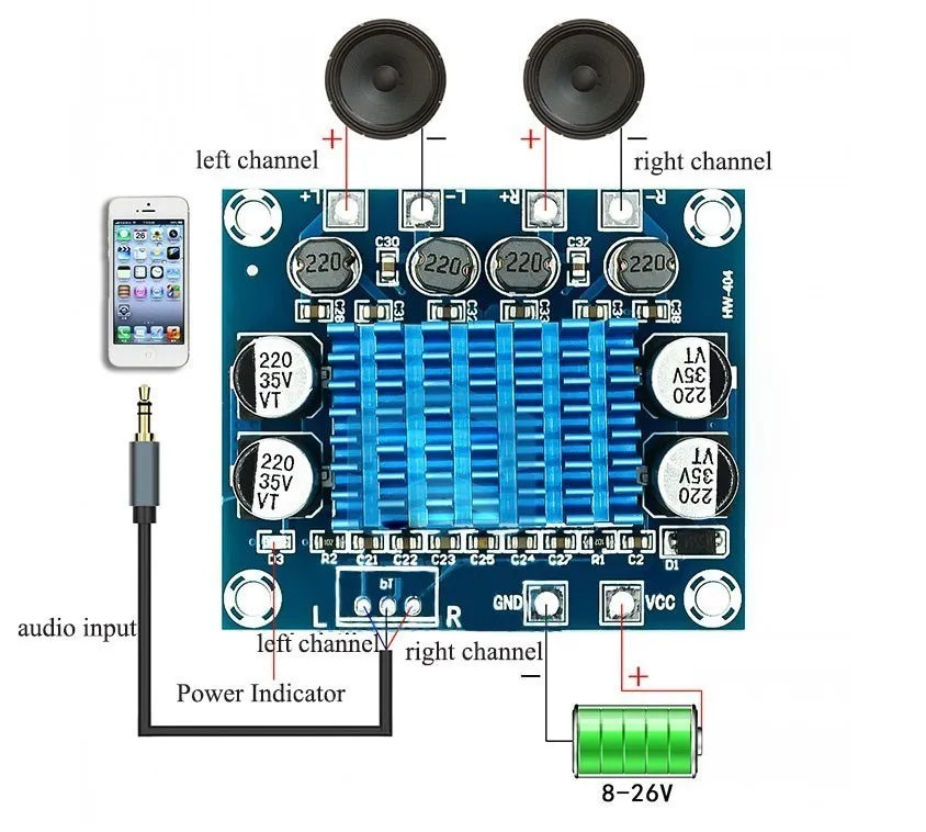 La descripción es inexacta. El amplificador TPA3110 tiene una potencia de salida de 2x15W, no de 2x30W como se indica en la descripción del producto. La salida de 30 W solo se puede lograr en modo MONO, pero el diseño de la PCB impide el funcionamiento en este modo.