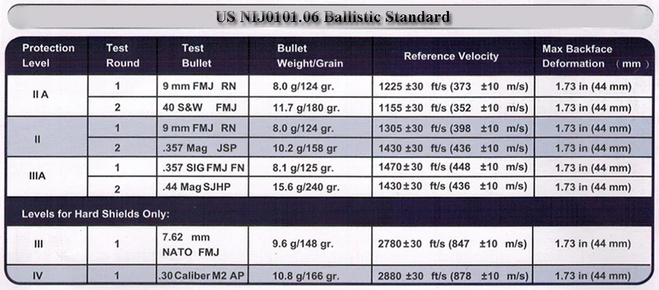 Protección contra: 9mm FMJ RN 1400 Fps (428 m/s)