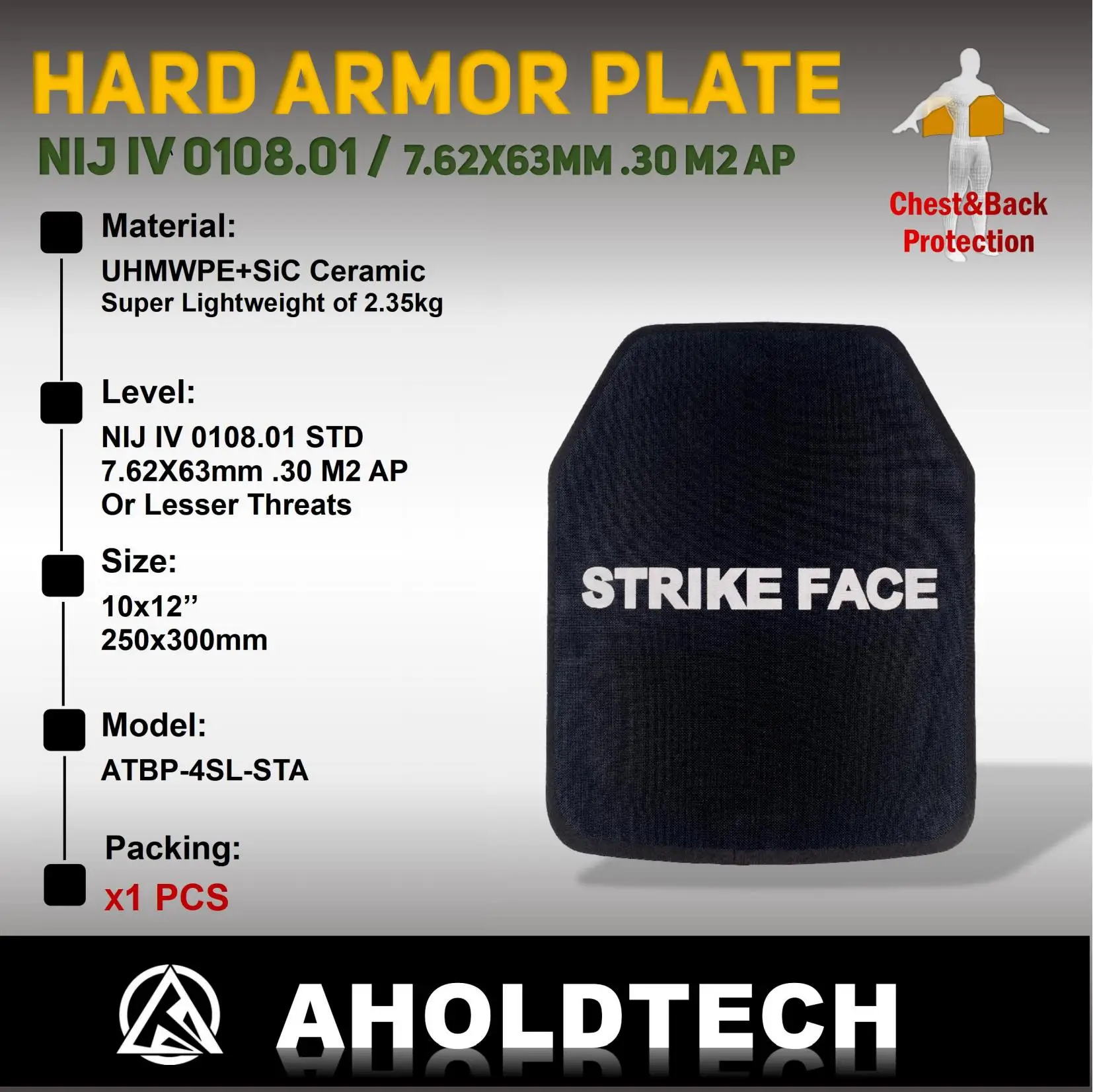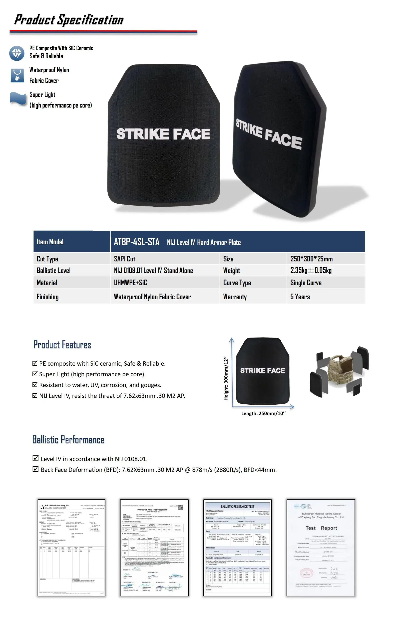 Placa de armadura dura NIJ IV, 63,30 7,62 x M2, Piercing SiC + PE, chaleco balístico a prueba de balas, 10X12, corte SAPI de curva única, Independiente