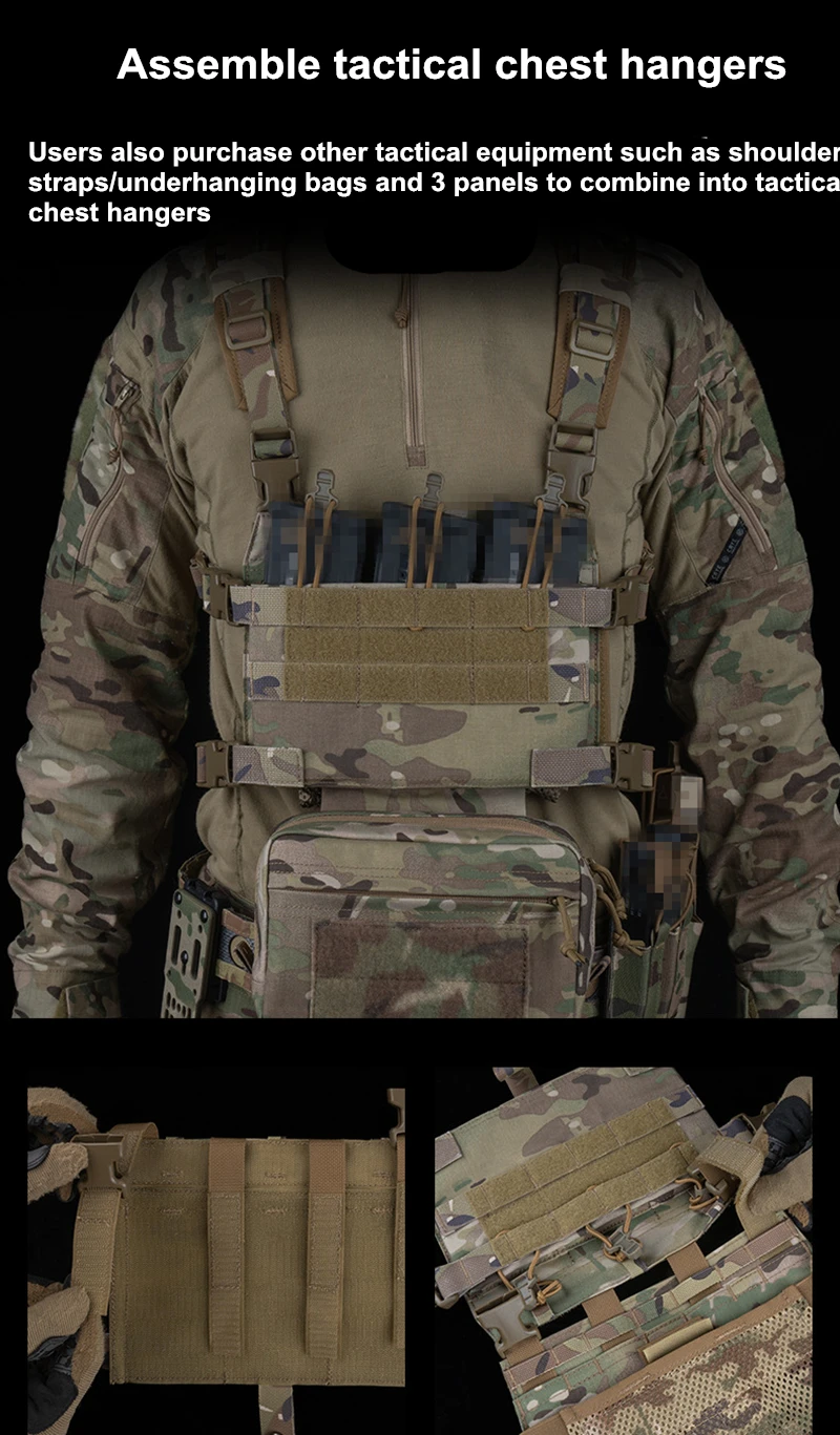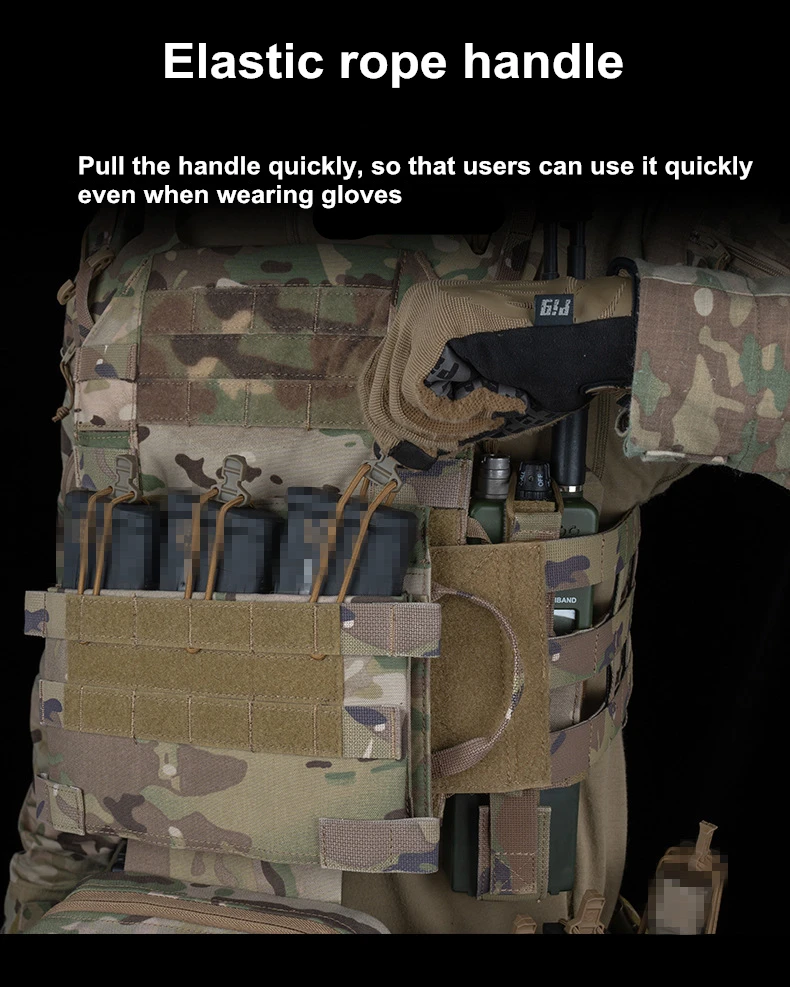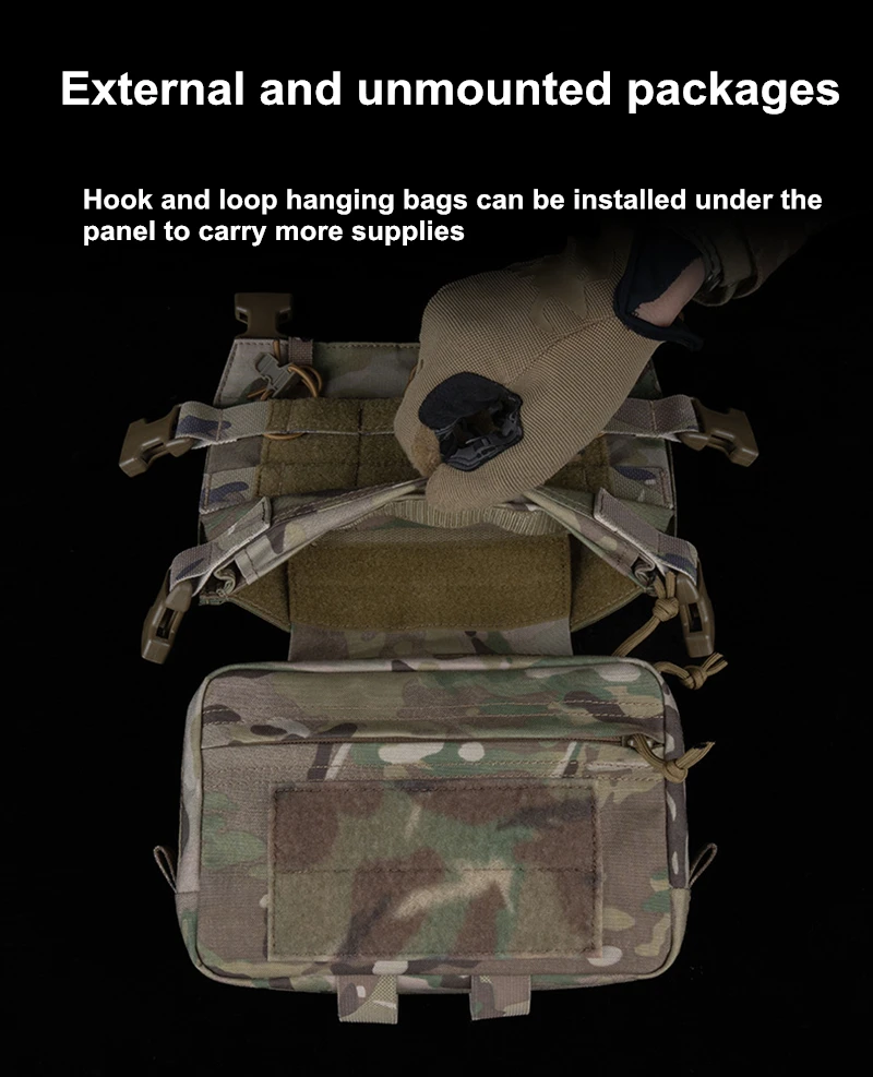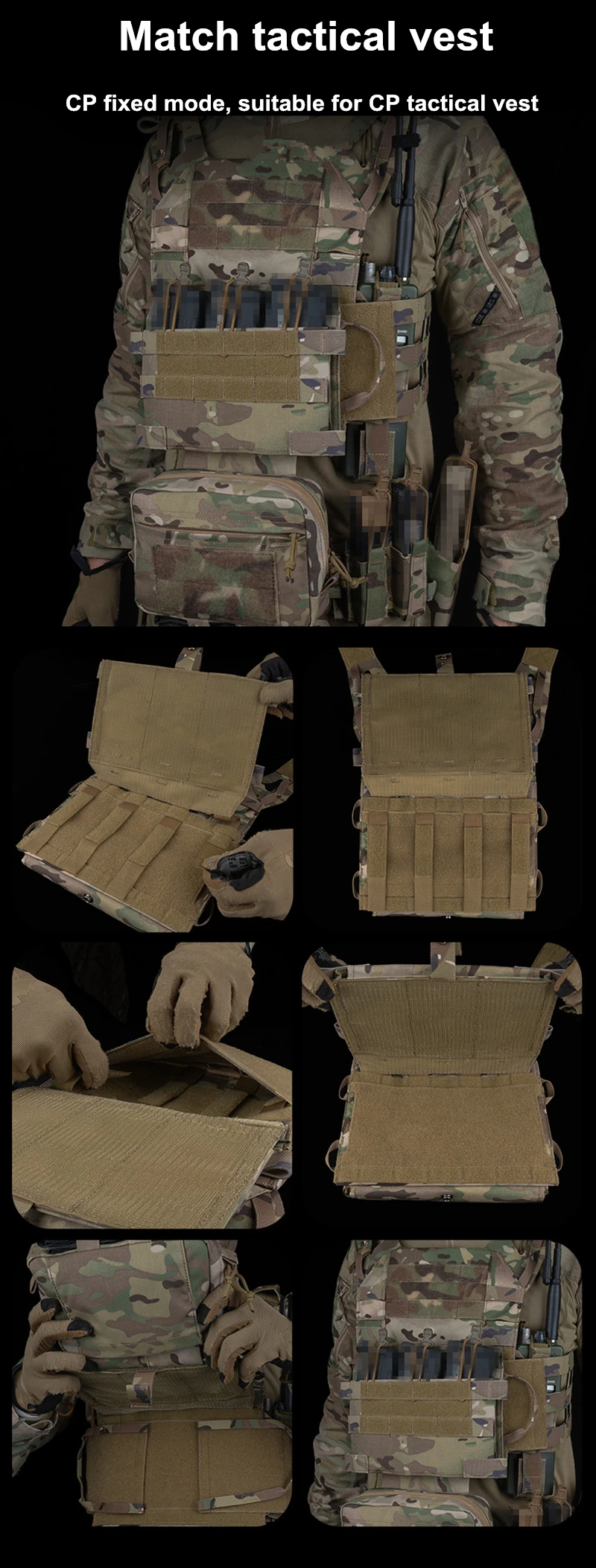 CRO DELANTERO: El vel_cro de bucle frontal se puede instalar con varios accesorios de vel_cro como chaleco, mochila, portaplacas.