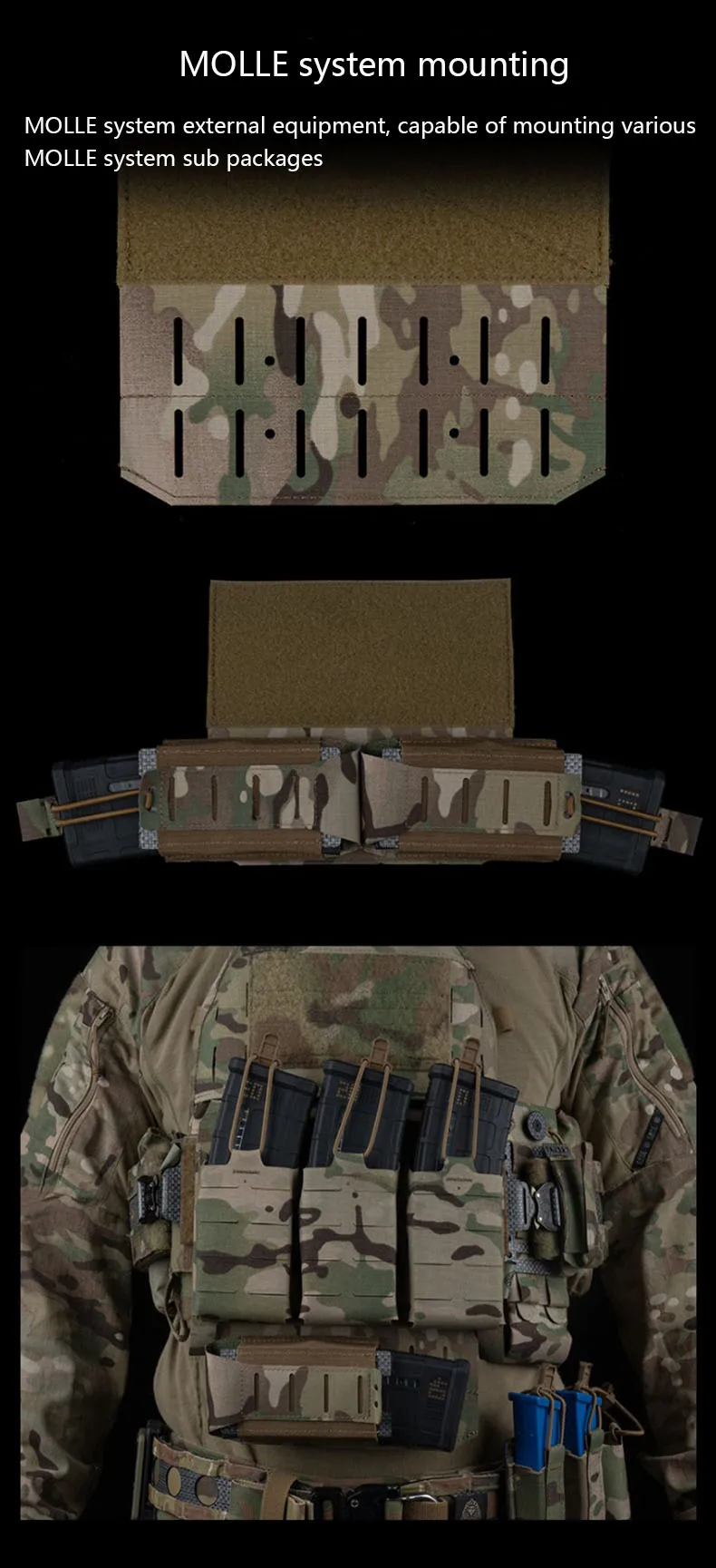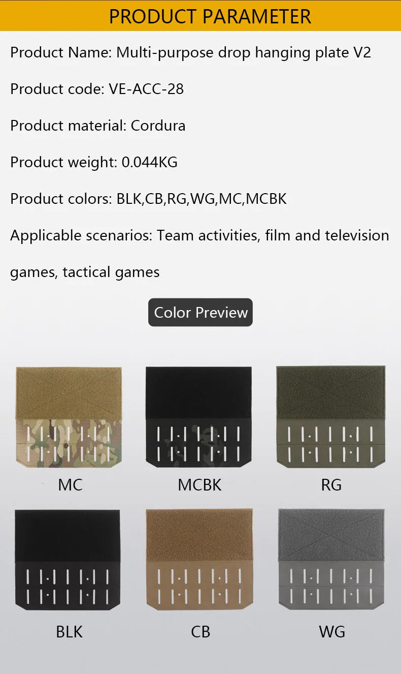 Placa colgante multiusos V2, montaje del sistema MOLLE, cinta mágica de doble cara, cuerda fija elástica