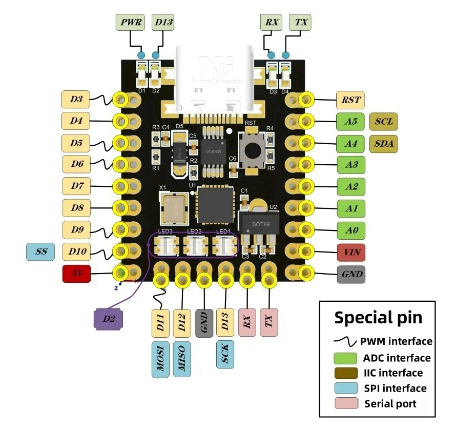 Puerto digital (IO-PWM): 14 (3/5/6/9/11 Soporte PWM