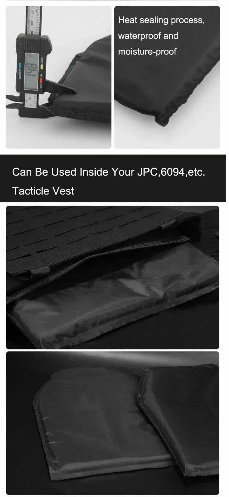 Un poco delgado para 45 hojas, parece más bien de 30/35. Una buena parte está compuesta por una capa de espuma y se siente así. No he probado las cualidades balísticas, pero bueno, más allá de 22LR no me sentiría seguro. Lo bueno es que hay una marca, una pegatina, con la información de clase III...