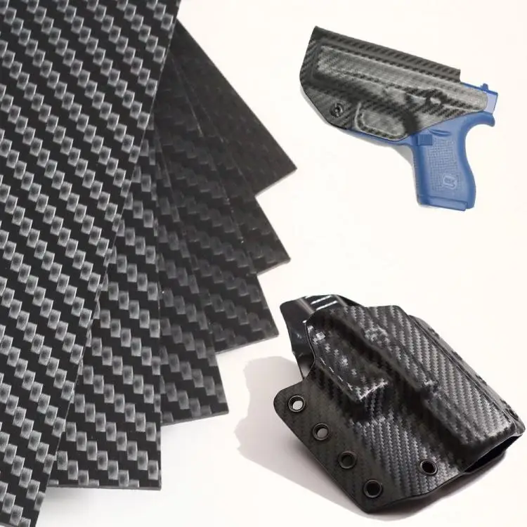 La tabla K de sarga de fibra de carbono es popular en América del Norte por los jugadores de cuchillos de bricolaje con moldeado termoplástico y puede hacer una variedad de exquisitos accesorios EDC y fundas para armas con vainas.