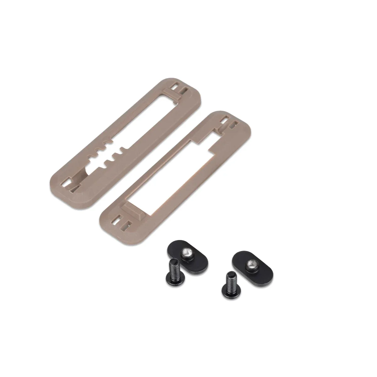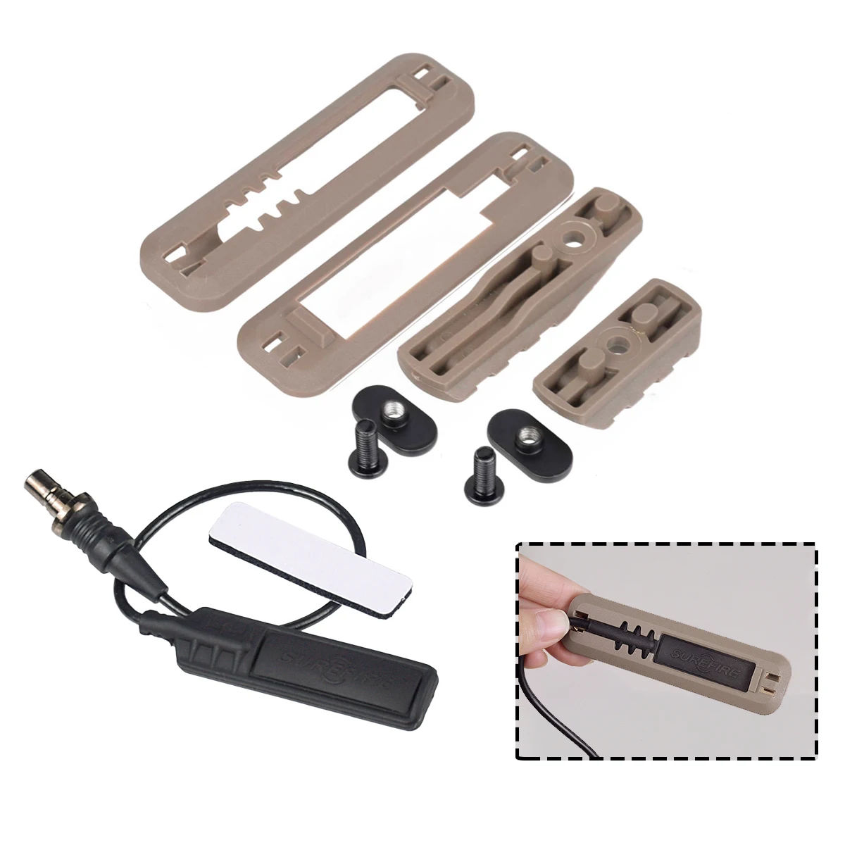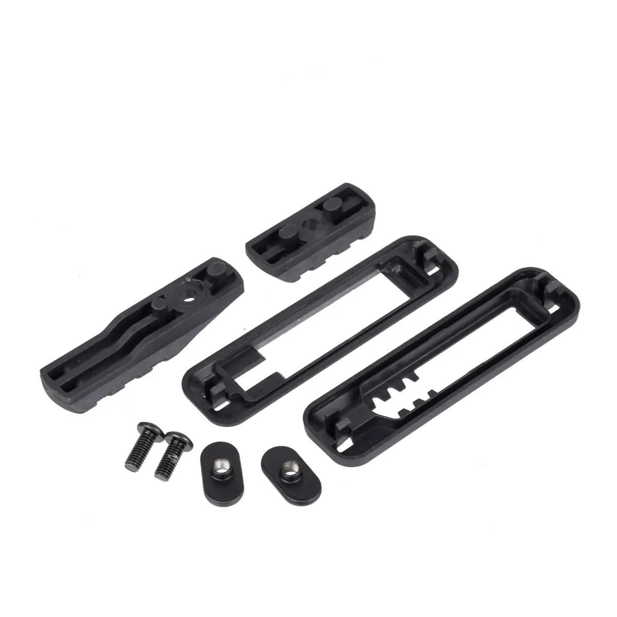 Material: polímero Color: negro, caqui Peso: 30 g Dos soportes de almohadilla para interruptor de presión optimizados (tanto estilos antiguos como nuevos, y todo el hardware de montaje) El kit de cuatro piezas incluye una sección de riel corto y soporte de riel voladizo.