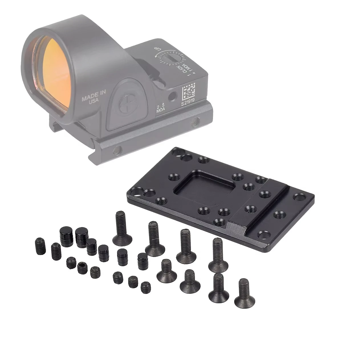- Esta placa de montaje se enorgullece de presentar un nuevo producto revolucionario The Universal Mount for Glock.¡Tiene el soporte supraaurales de altura más baja de la industria sin la molestia de cortar su tobogán o el costo de comprar un tobogán no original!- ¡Hemos puesto muchas horas y 1000 rodadas con la mayoría de las ópticas de punto rojo más populares del mercado sin ningún problema!Esto incluye Bur-ris* Fast* Fire* II & III, Leupo* Docters* II & III, * RM,* y muchos otros.- El soporte en sí se fija al tobogán mediante la cola de paloma con 6 tornillos de fijación.Dos en la cola de milano cortados y uno hacia adelante y hacia atrás de la cola de milano y dos más para evitar cualquier turno.Esto proporciona un soporte estable, resistente y resistente que aguantará cero repetidamente.Otros accesorios de montaje incluidos son tornillos de 6 mm, 8 mm y 10 mm (dos de cada uno) que se utilizan para colocar y asegurar la mayoría de las ópticas populares que existen.Instalación:- Dependiendo de qué óptica tendrás necesitarás encontrar los tornillos que se correla con tu óptica particular.Hay dos tornillos especiales para RM.Una vez que haya asegurado el GUM a su diapositiva y haya encontrado el poste correcto (dos juegos de postes de refuerzo incluidos) para su óptica, continúe y monte su óptica en el poste y use los dos tornillos de seguridad finales más largos para asegurar su óptica al GUM.- Se recomienda encarecidamente que un armero instale el GUM y utilice las herramientas correctas para la instalación.- Leupold Delta Point* se puede montar pero no con postes reforzados para asegurar el 100%Características:- Soporte óptico universal para la mayoría de los sitios proliferados en el campo