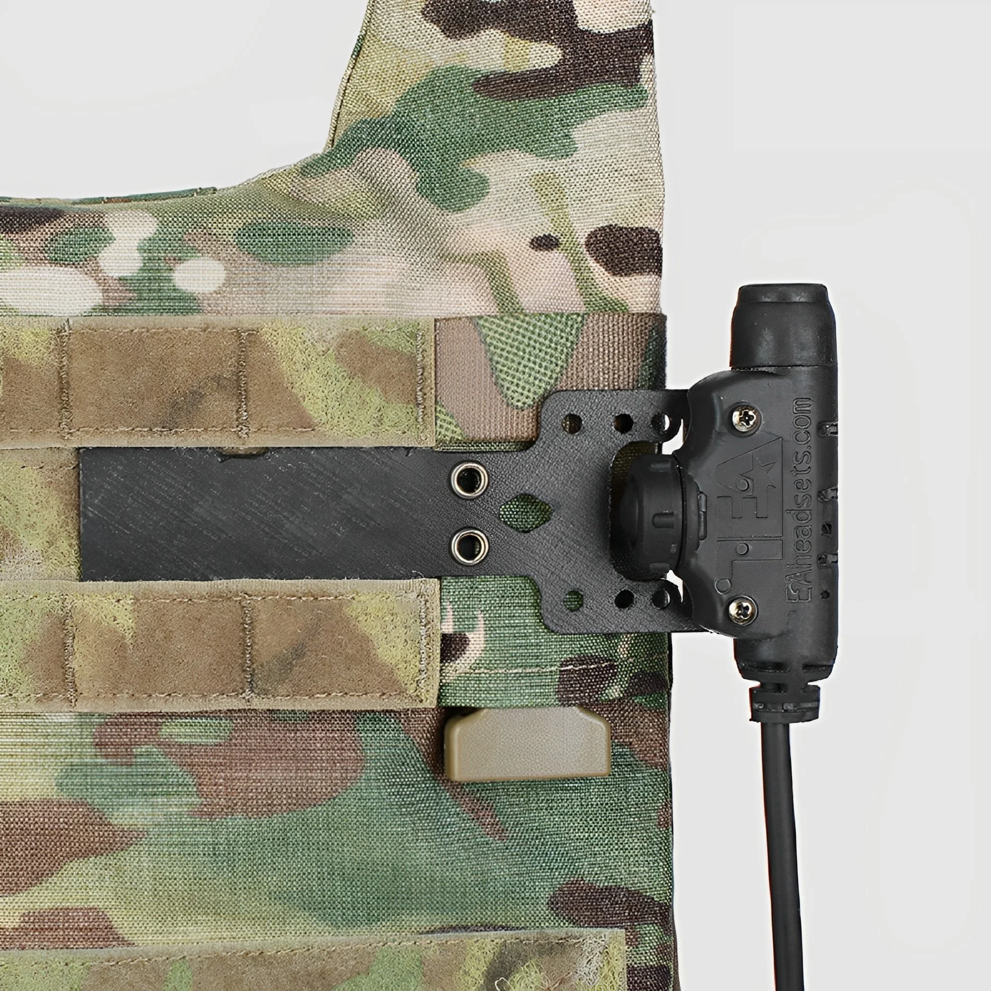 Características: instalación simple y no destructiva con componentes PTT de fábrica, compensa el PTT hacia el lado de su portador, mejora el espacio libre para la electrónica montada en el portador (ATAK, etc.)