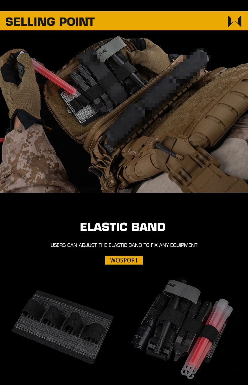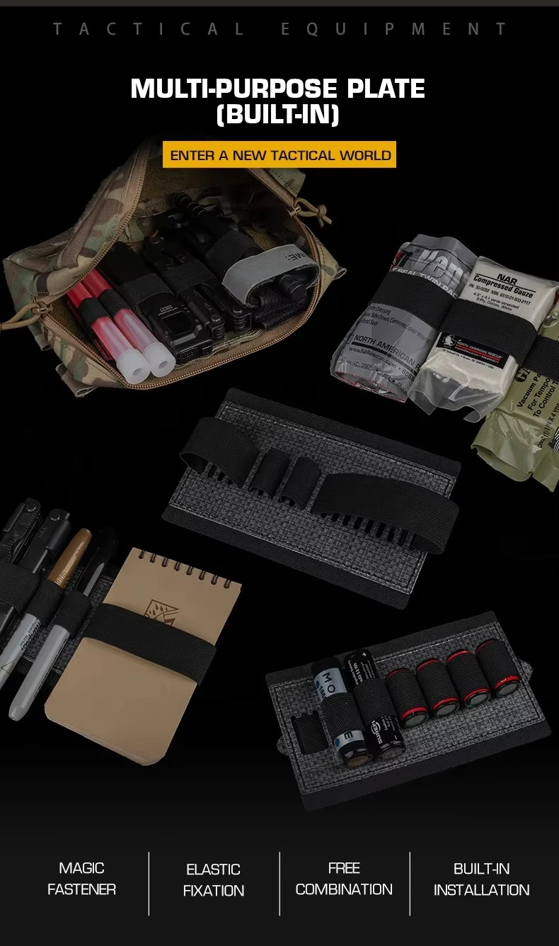 Placa multiusos integrada con banda elástica y cierre mágico para suministros de almacenamiento, accesorios de cazaInformación del producto:Nombre del producto: Placa multiusos (integrada)