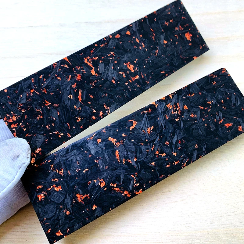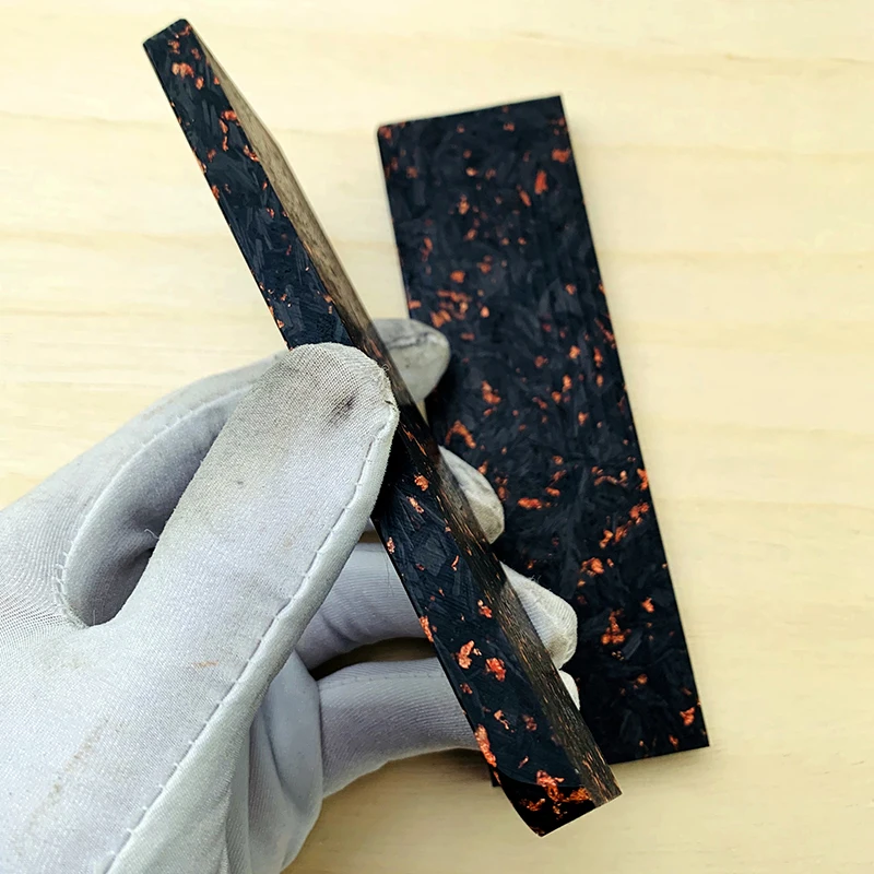 Placa de parche de compresión de polvo de cobre, material para mango de cuchillo DIY, fibra de carbono CF marmolada con resina, 135x40x4mm, 1 unidad