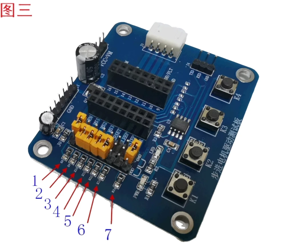2,3,4.La resistencia pull-up en el pin de subdivisión está conectada a VDD de forma predeterminada.Configure la subdivisión según los diferentes módulos de accionamiento del motor.Para algunos módulos con solo dos pines de subdivisión, solo es necesario configurar dos y se puede ignorar el otro.