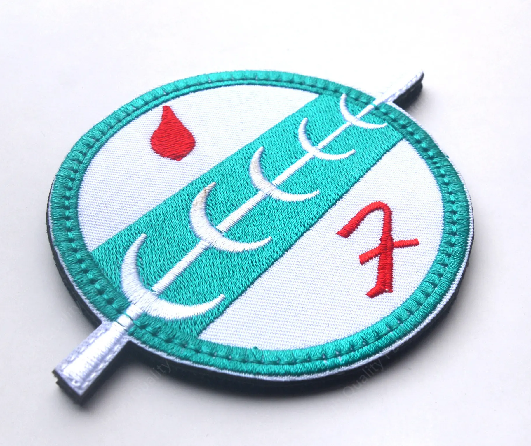 Atrás.Parche bordado/reflectante con gancho y bucle, parche de PVC con gancho solamente (si desea un bucle, compre un bucle de 8 CM)