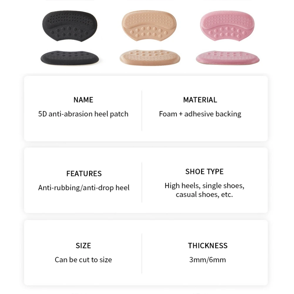 3. Hecho de cómoda esponja 5D y tela transpirable para apoyar el pie y aliviar el dolor, la pegatina del talón viene con adhesivo para una mejor fijación a los zapatos.