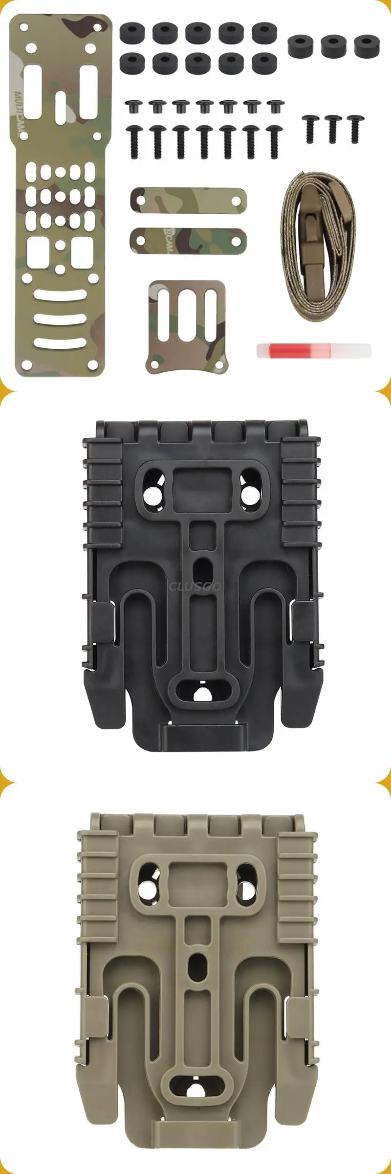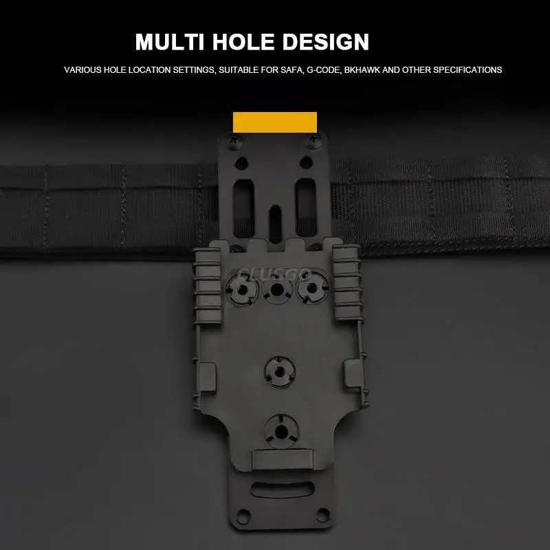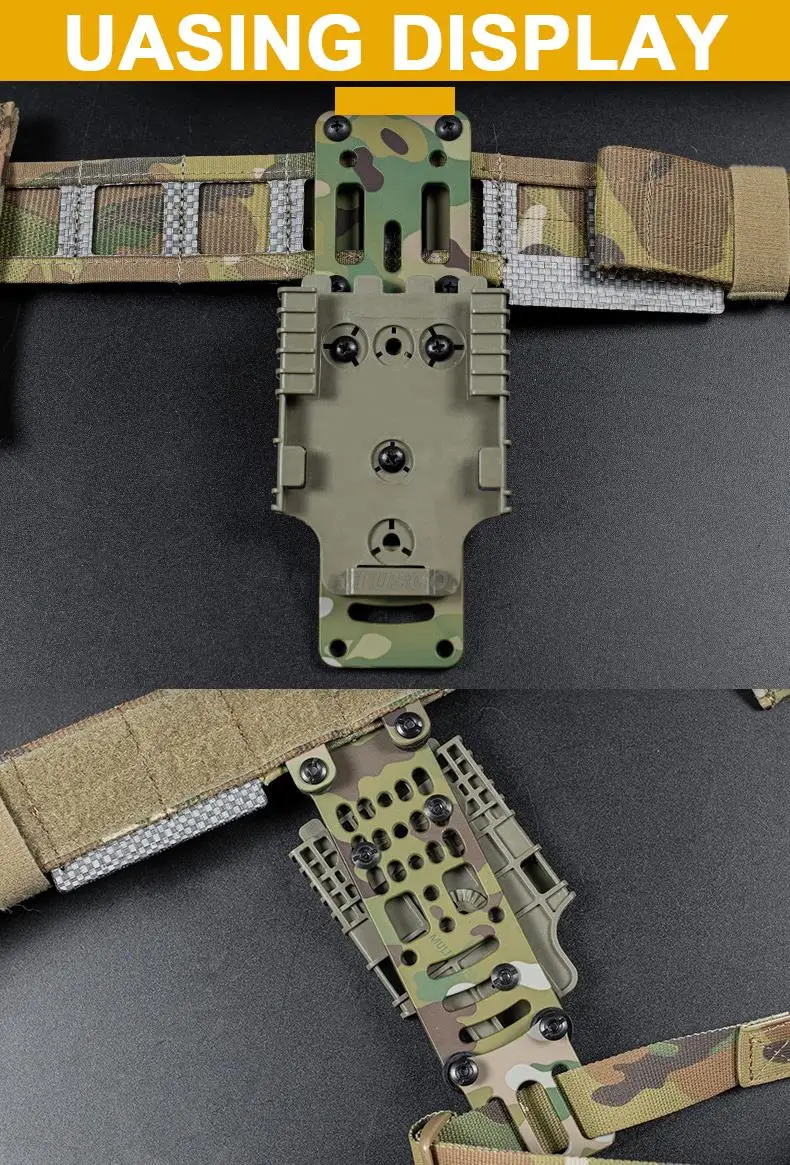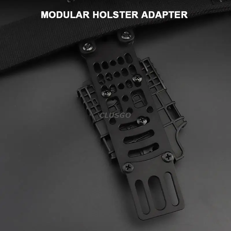 - Este adaptador se adapta a todas las fundas de tipo patrón de "tres orificios" y marcas de fundas que utilizan este método de fijación probado.También admite el uso de muchos sistemas de fundas de separación rápida de uso común, como QLS, MLS, ELS y otros.