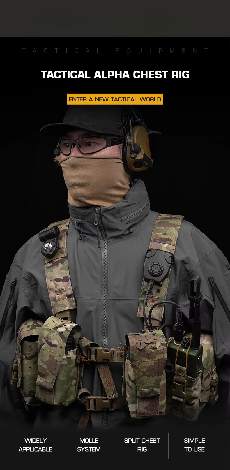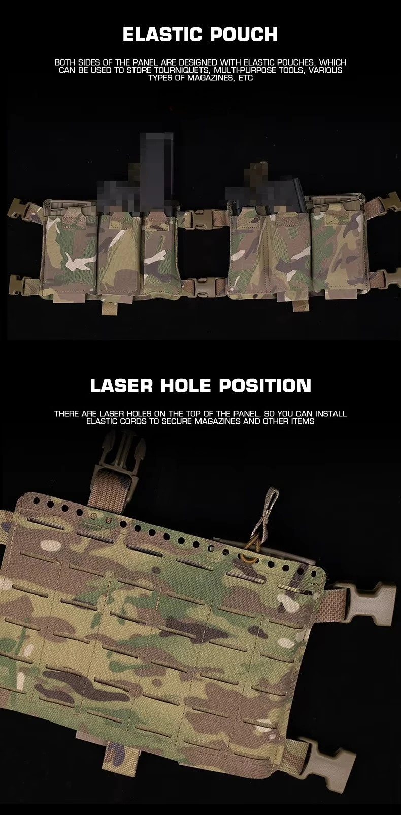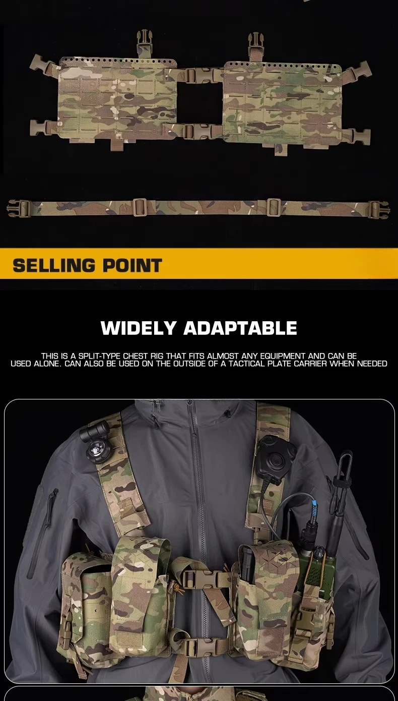 Plataforma de pecho Alpha con diseño dividido, accesorios de caza con sistema MOLLE