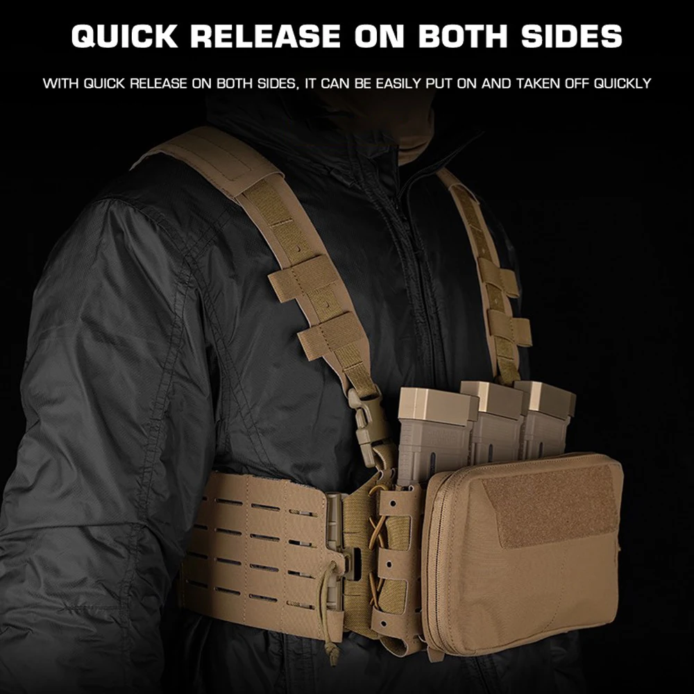 Plataforma táctica ARC para pecho, diapositiva bilateral de 3a GEN, sistema MOLLE de liberación rápida con bolsa triple para cargador 5,56, accesorios de caza
