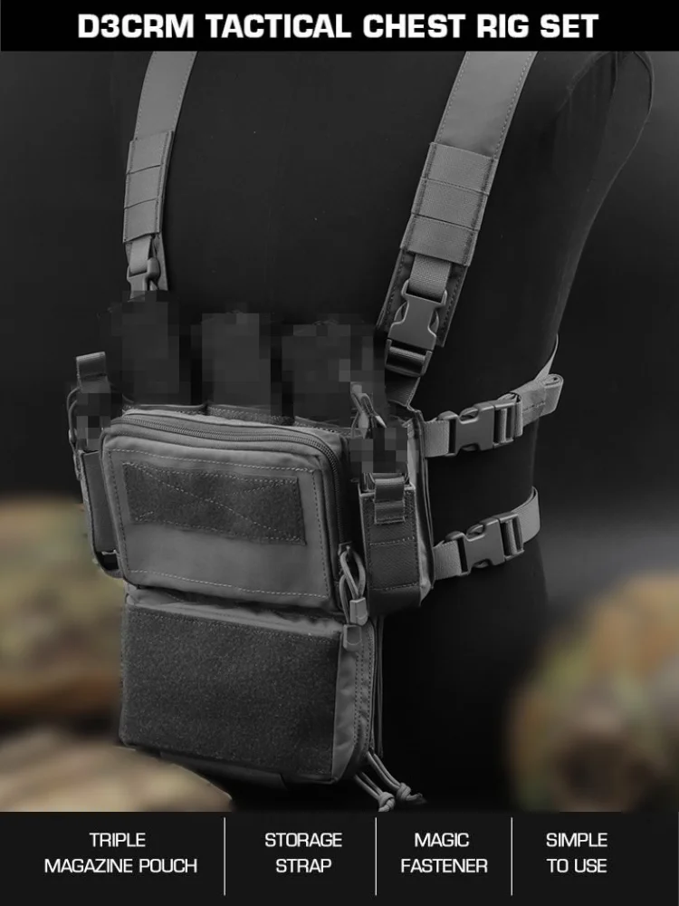 Plataforma de pecho de caza D3CRM | Arnés de pecho modular compatible con MOLLE | Para accesorios de caza y softair