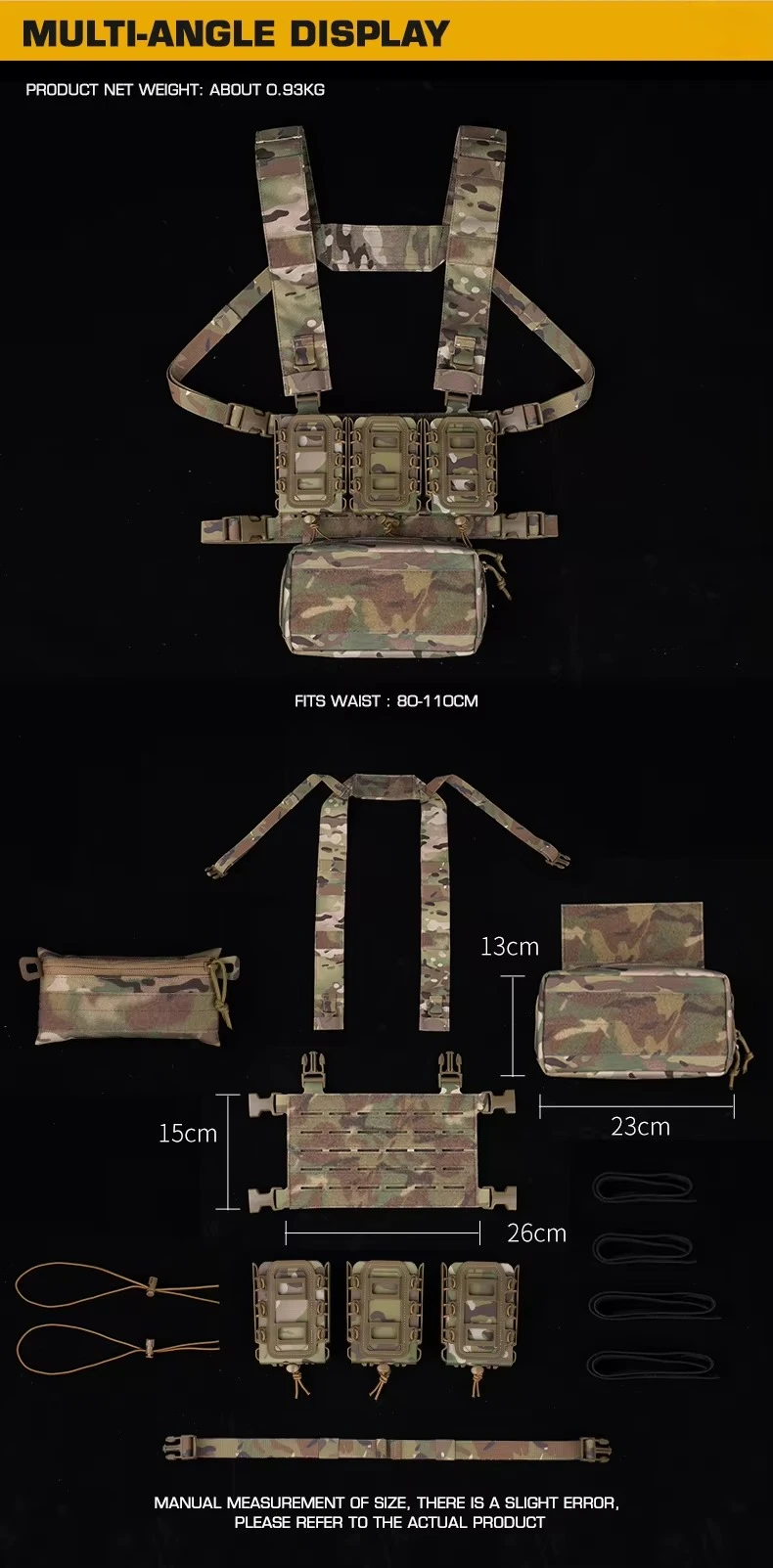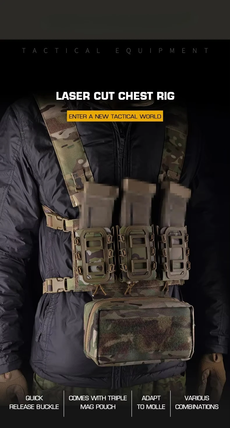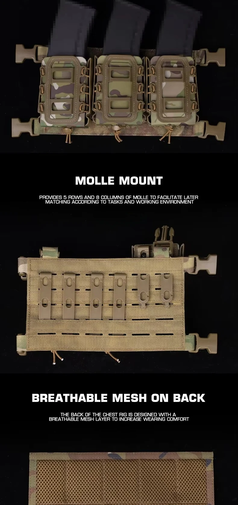 Plataforma de pecho cortada con láser y bolsa de triple imán, chaleco colgante de pecho MOLLE ligero, accesorios de caza