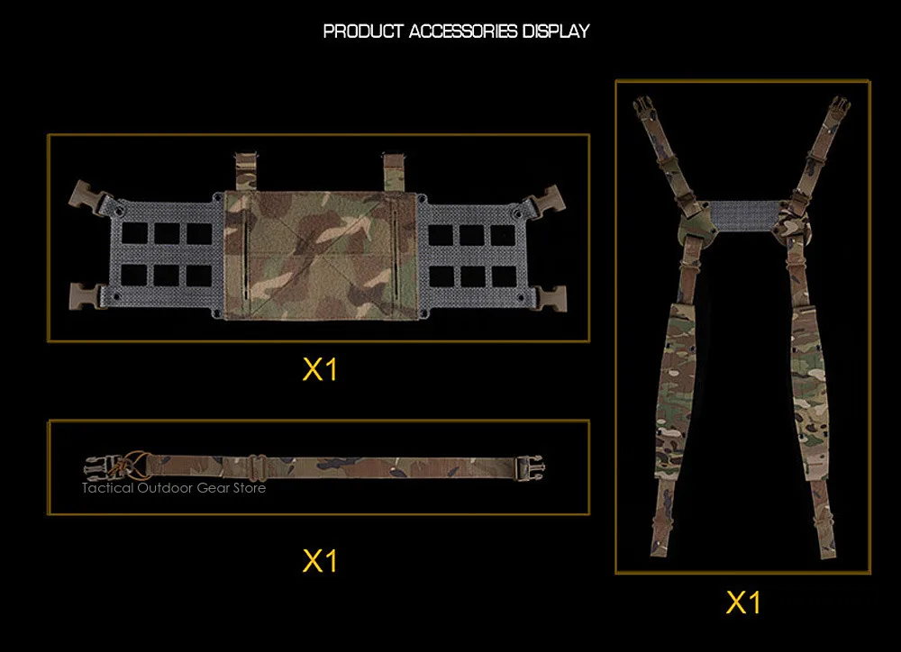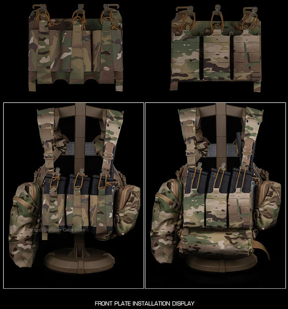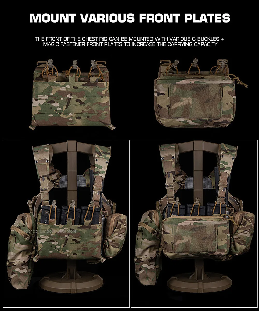 2La parte frontal de la plataforma torácica se puede montar con varias placas G y placas frontales con panel de bucle para aumentar la capacidad de carga.