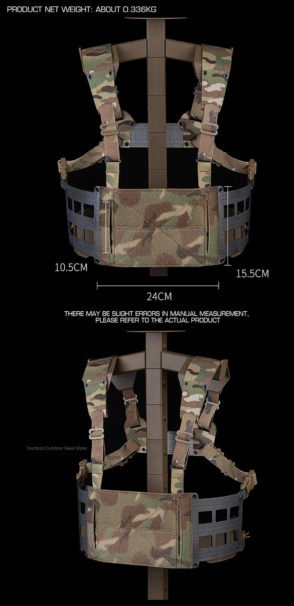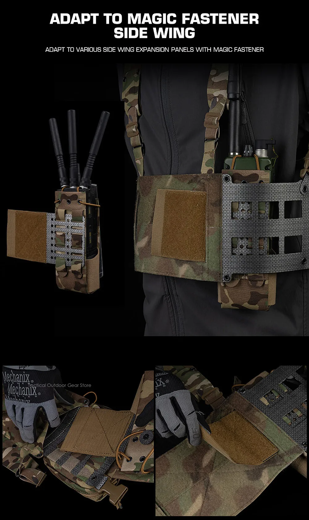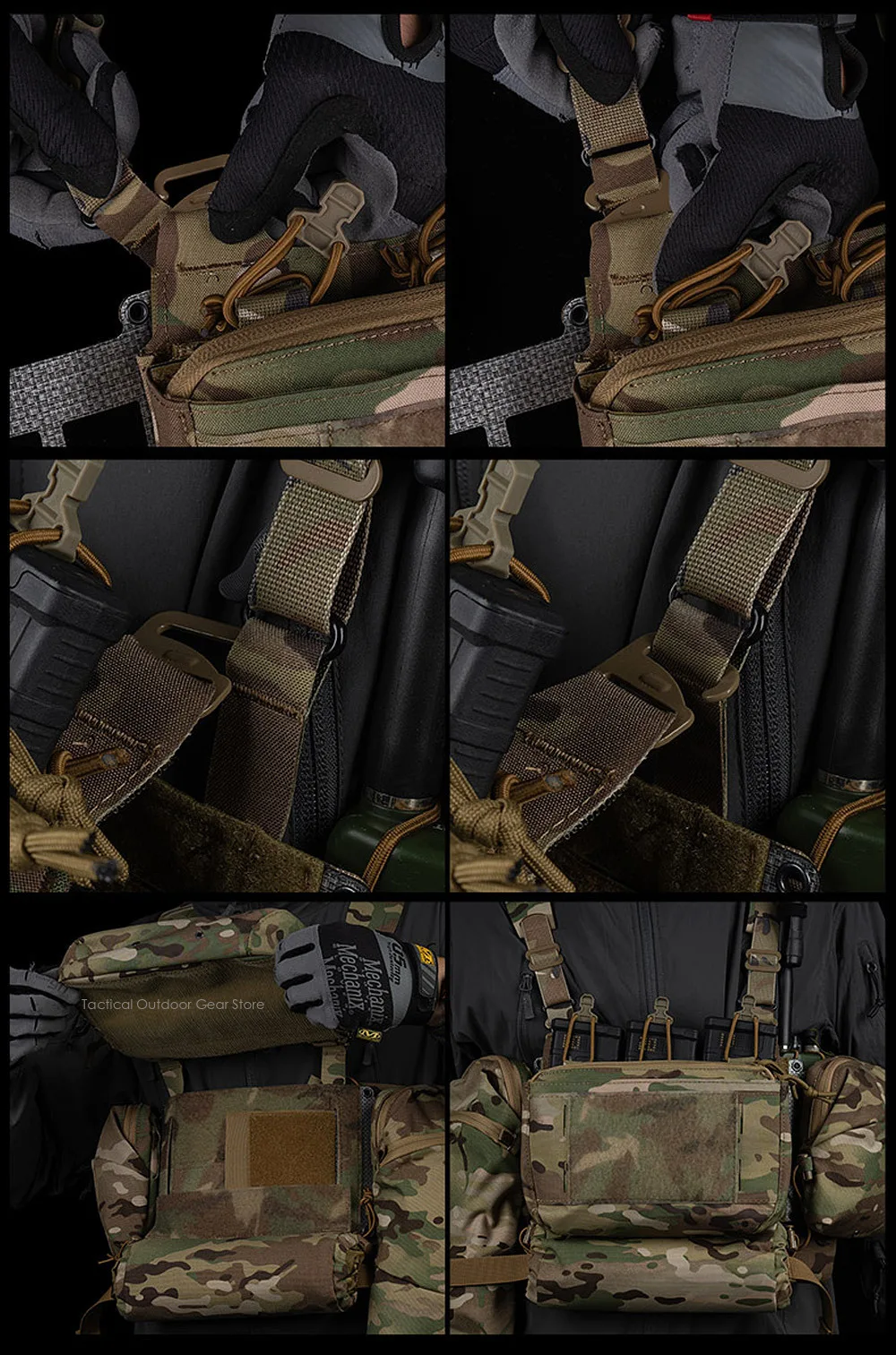 2La parte frontal de la plataforma torácica se puede montar con varias placas G y placas frontales con panel de bucle para aumentar la capacidad de carga.