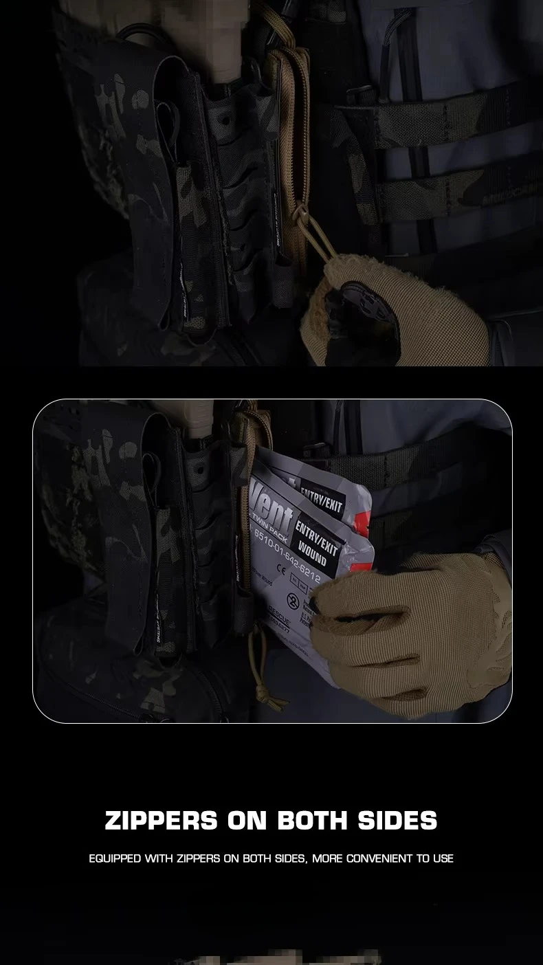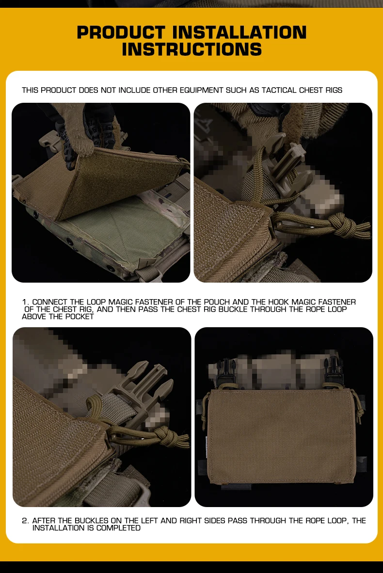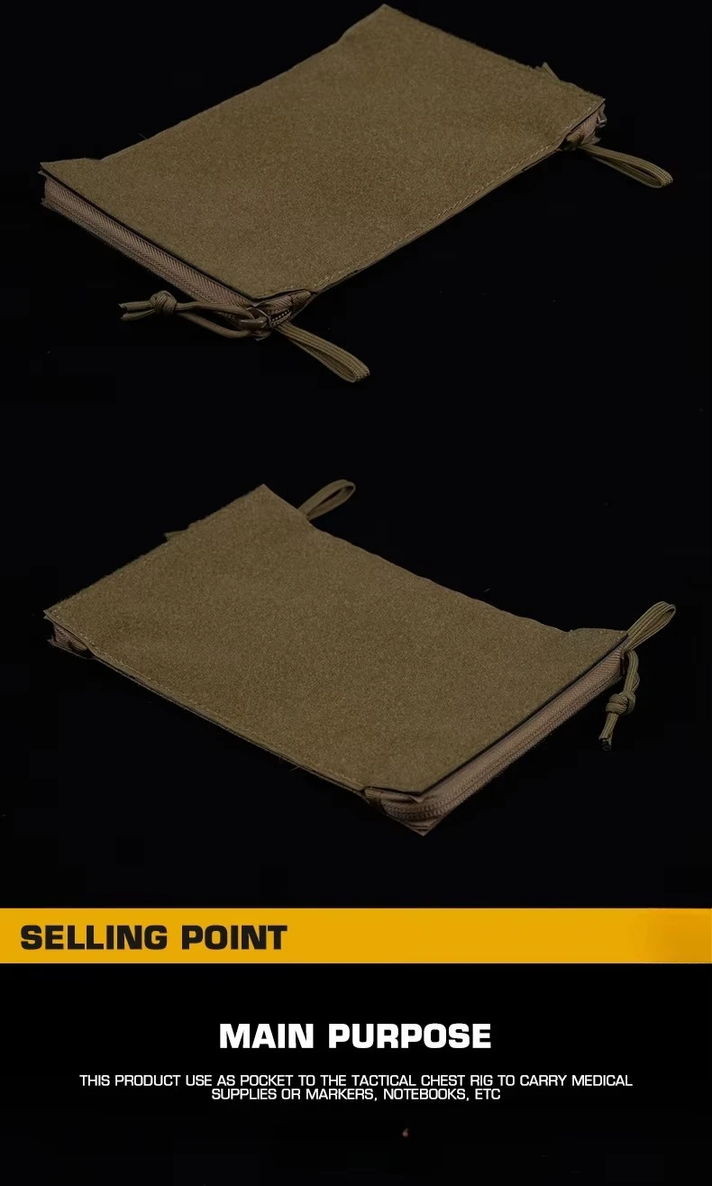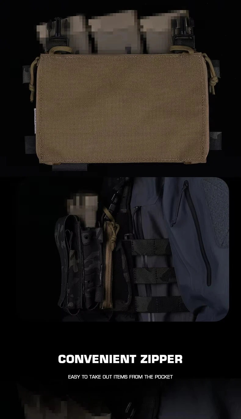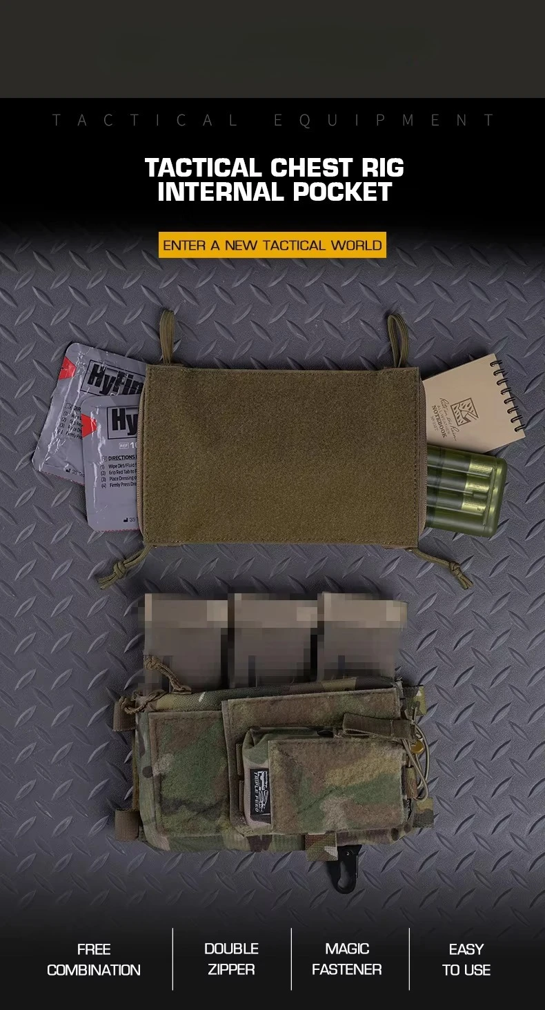 Equipo de pecho de nailon 500D, bolsillo interno con doble cremallera, chaleco de pecho, equipo, cinta mágica, bolsillo, accesorios de caza