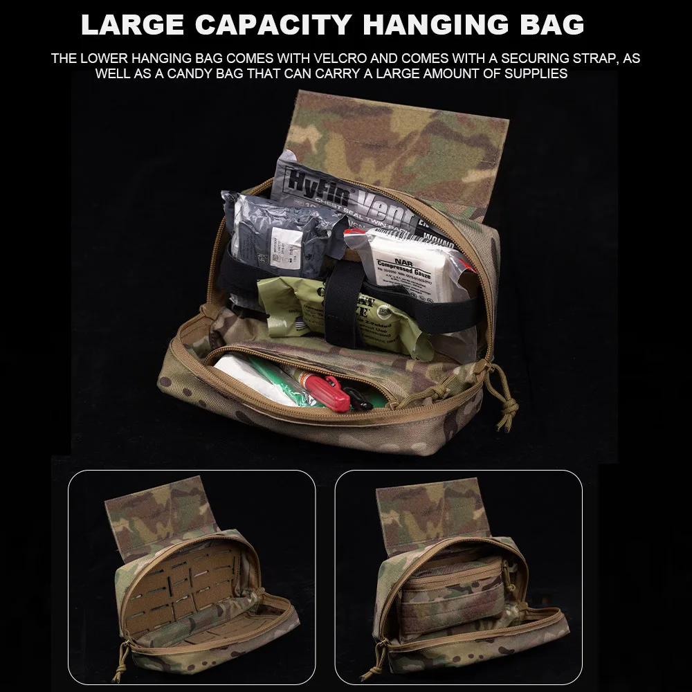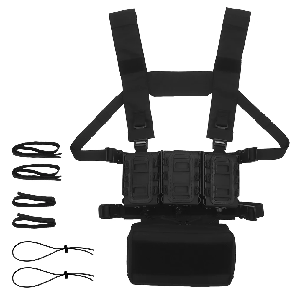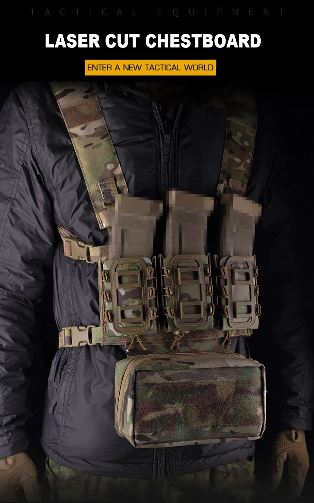 Plataforma de pecho táctica cortada con láser con soporte de bolsa triple para cargador 5,56/7,62, bolsa colgante multifuncional, bolsa de dulces incorporada