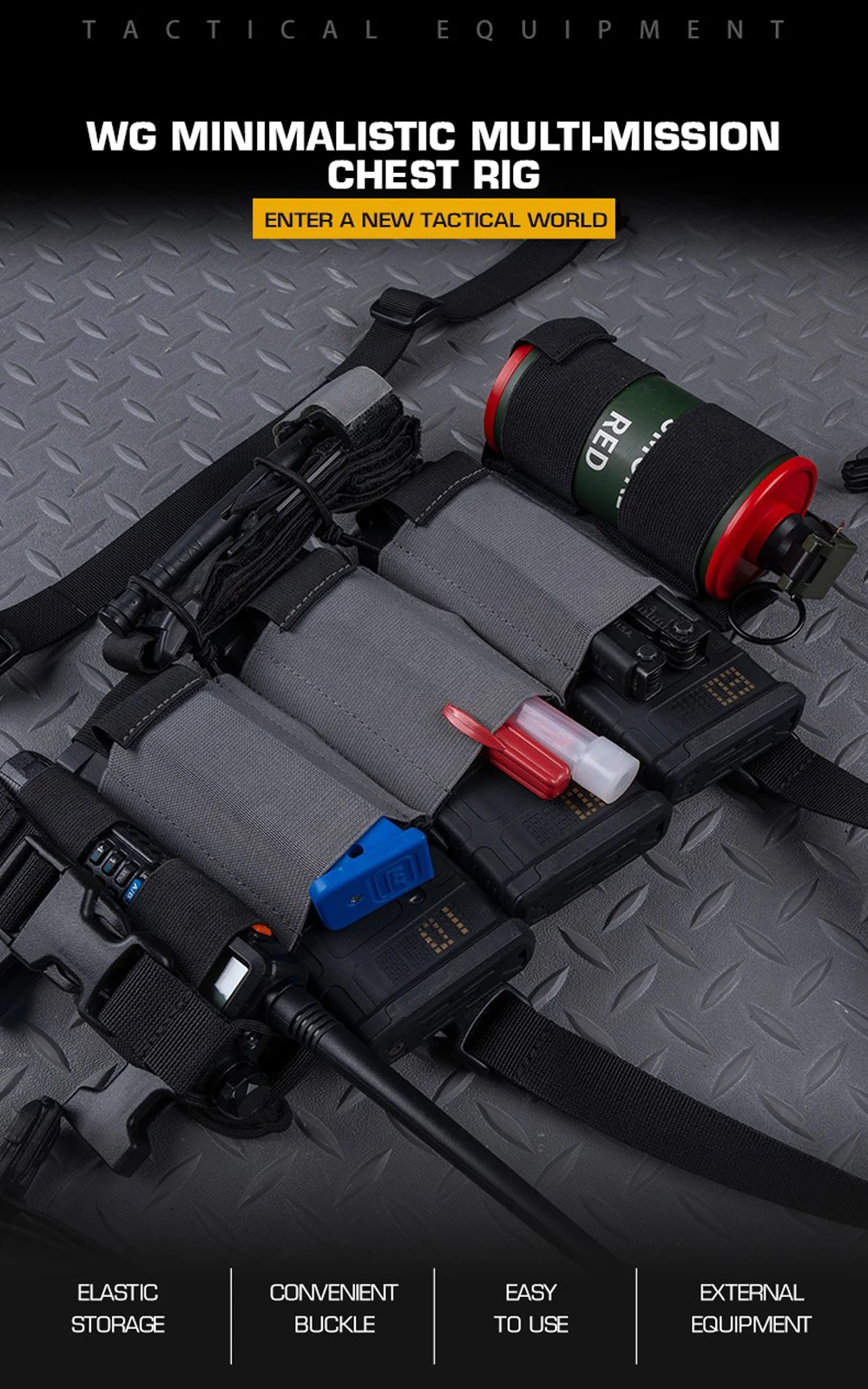 Plataforma de pecho táctica, ligera, minimalista, de seguridad de baja visibilidad, multiisión militar con bolsa Triple Mag de doble capa