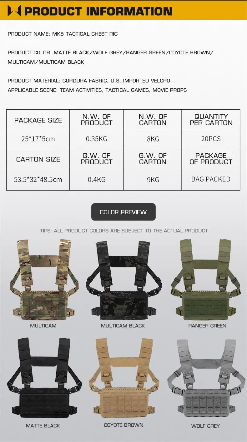 Plataforma de pecho táctica MK5, chalecos de caza, entretenimiento deportivo, accesorios de ropa Airsoft