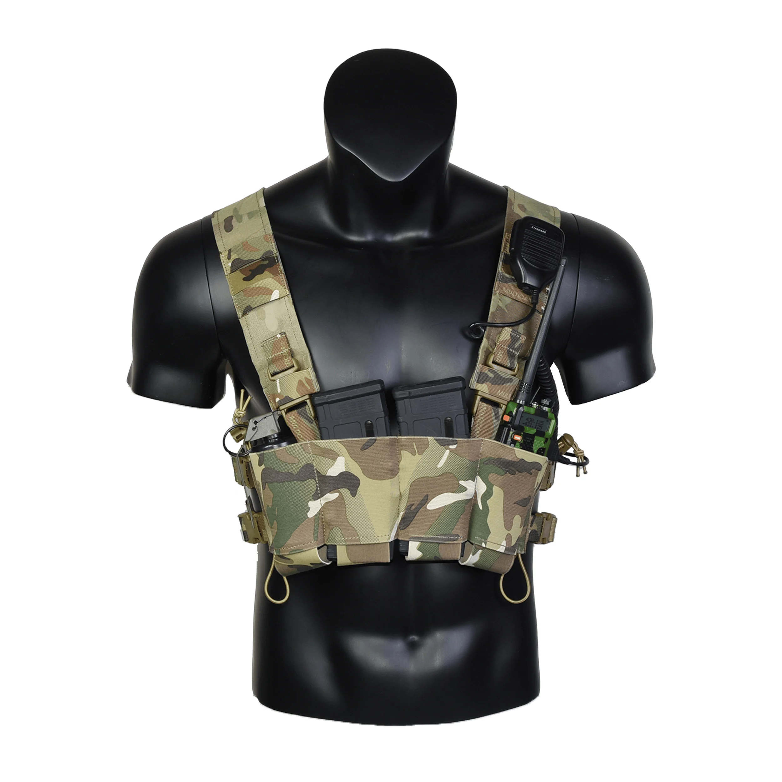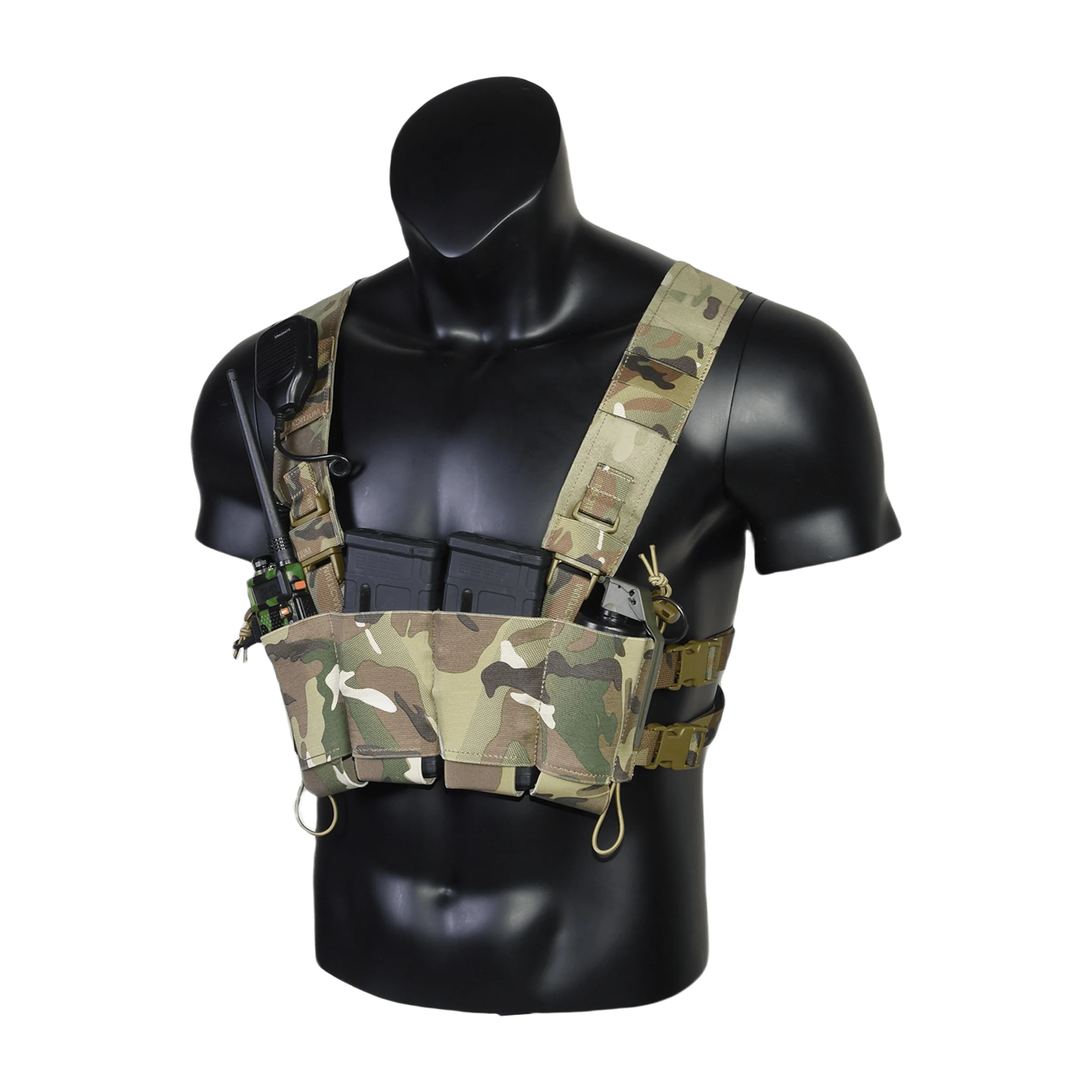 Debido a la naturaleza minimalista del Chest Rig, no viene con gancho y bucle para montar subcargas ni sujetarlo a un soporte de placa.