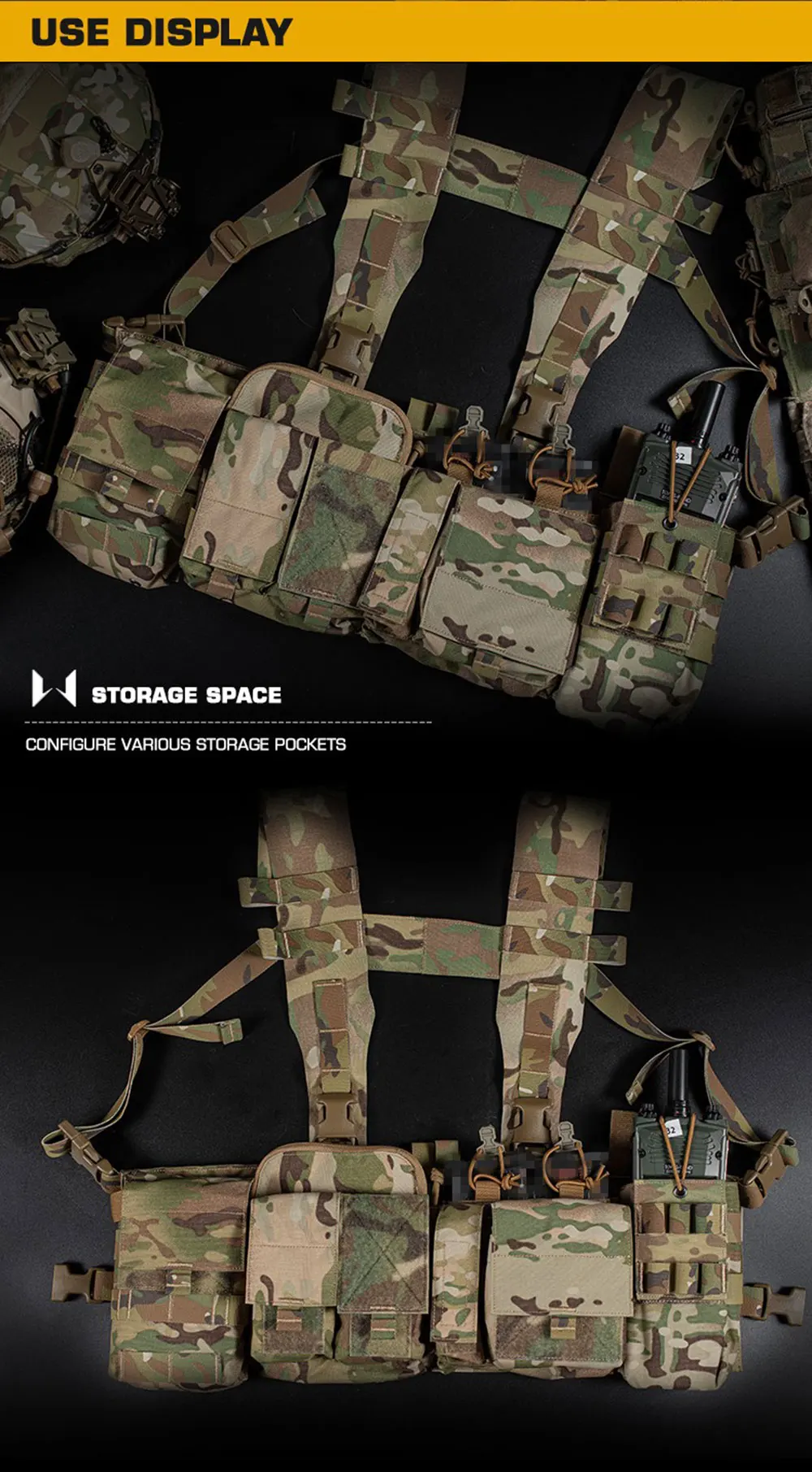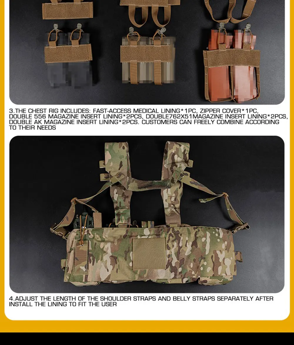 ④Correas de hombro MOLLE cortadas con láser para montar equipo táctico.