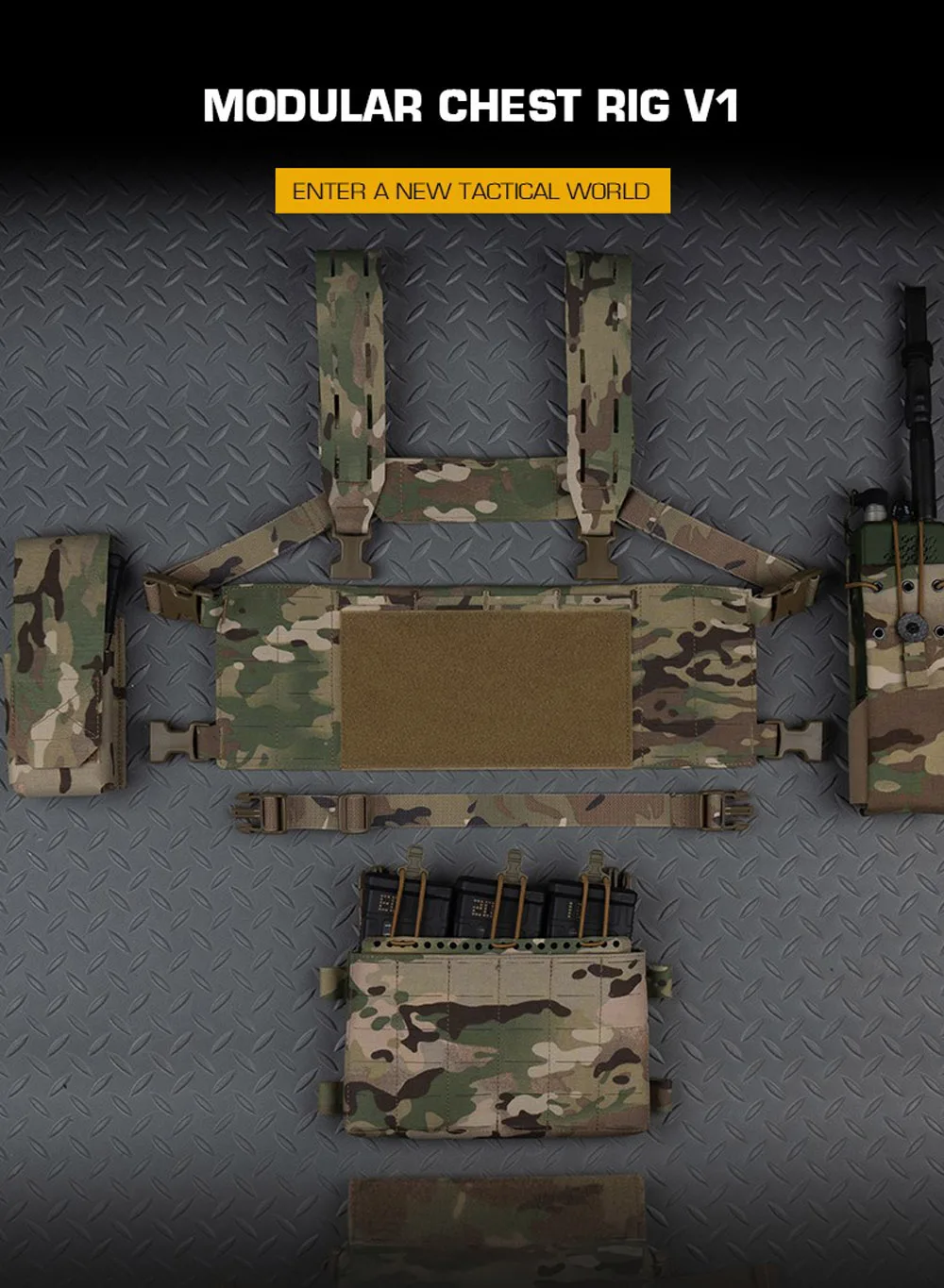 Plataforma de pecho táctica V1, bolsa para revistas 556 integrada, chaleco de entrenamiento de combate de caza MOLLE, chaleco modular de liberación rápida CS Match Wargame Gear