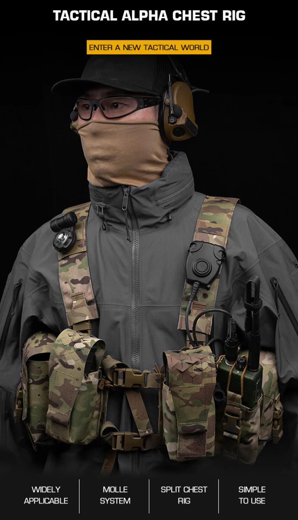 Bolsa de almacenamiento elástica interna del sistema MOLLE de doble Panel de camuflaje de plataforma de pecho táctica Alpha Chest Rig